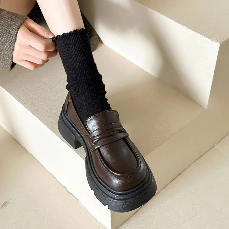 【人気商品】2025新作レディースブーツ 厚底ブーツ 美脚 靴 女性の春と秋の2025新しい厚いヒールjkシングルシューズ厚底靴