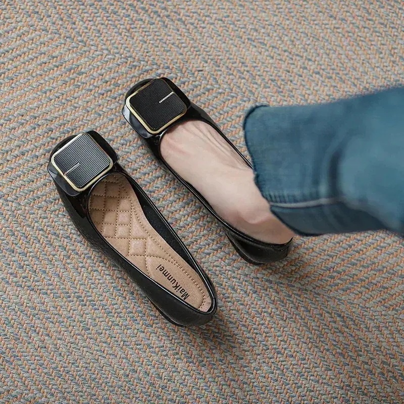 【人気商品】2025新作パンプス ローヒール痛くない レザーフレンチローヒールスクエアヘッド厚いヒール浅い口フラットシングルシューズ女性春と秋 韓国ファッション
