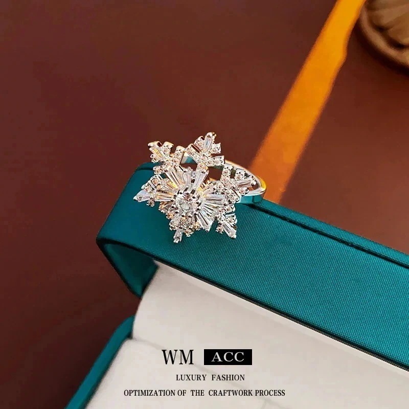 【人気商品】電気メッキジルコニア回転可能な雪の結晶リング 秋と冬のファッション人差し指リング レディースのための光豪華な高感度ハンドジュエリー