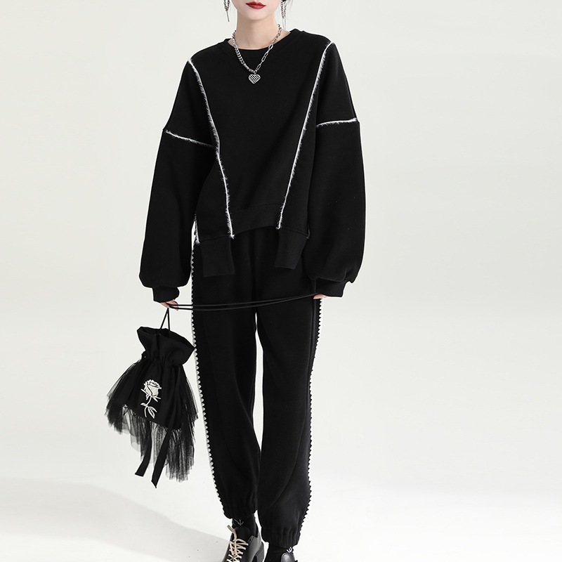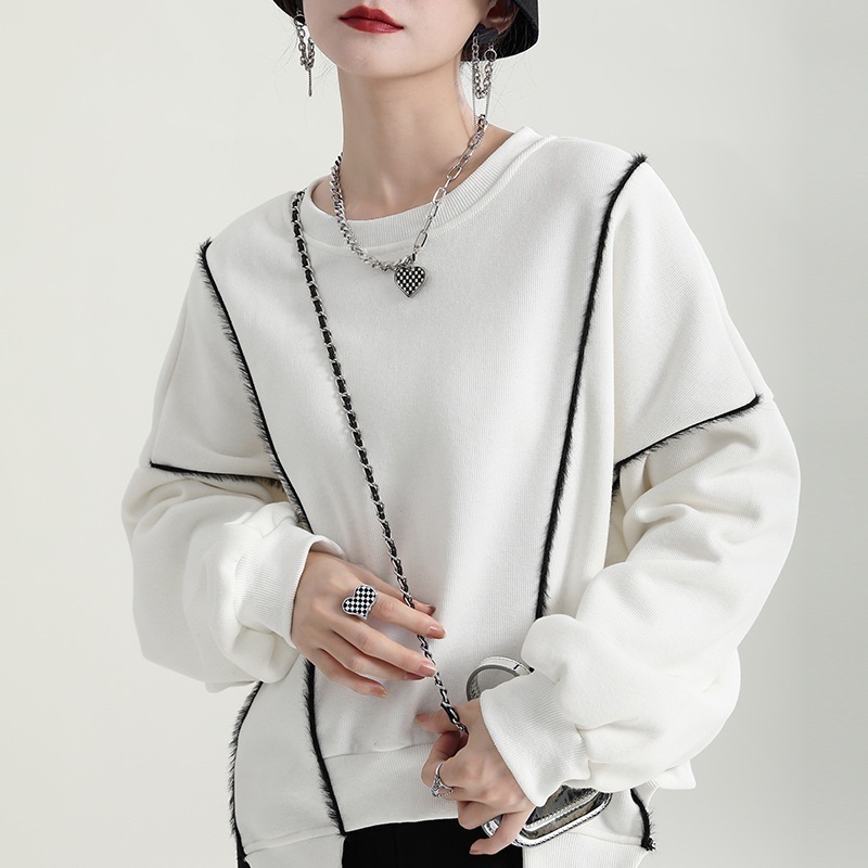 T カシミヤタッチ スウェット ドッキング 福袋 ラウンドネック トレーナー メガ割 春秋 ブラウス 裏起毛 裾スリット トップス 【J.Fashion】 保温