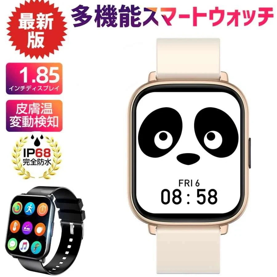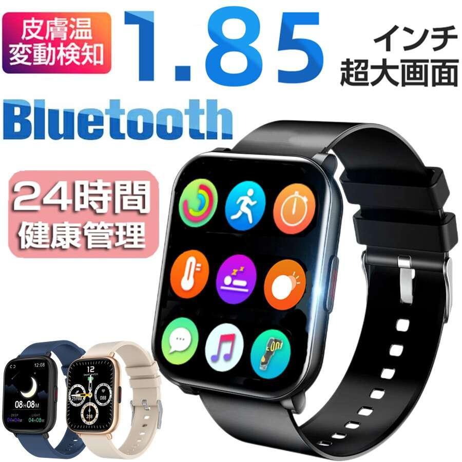 1.85インチ大画面 体温計スマートウォッチ心拍数睡眠モニター温度測定器心拍数血圧ブレスレットフィットネスデュアル温度UIを呼び出す 体温測定器超大画面当日発送