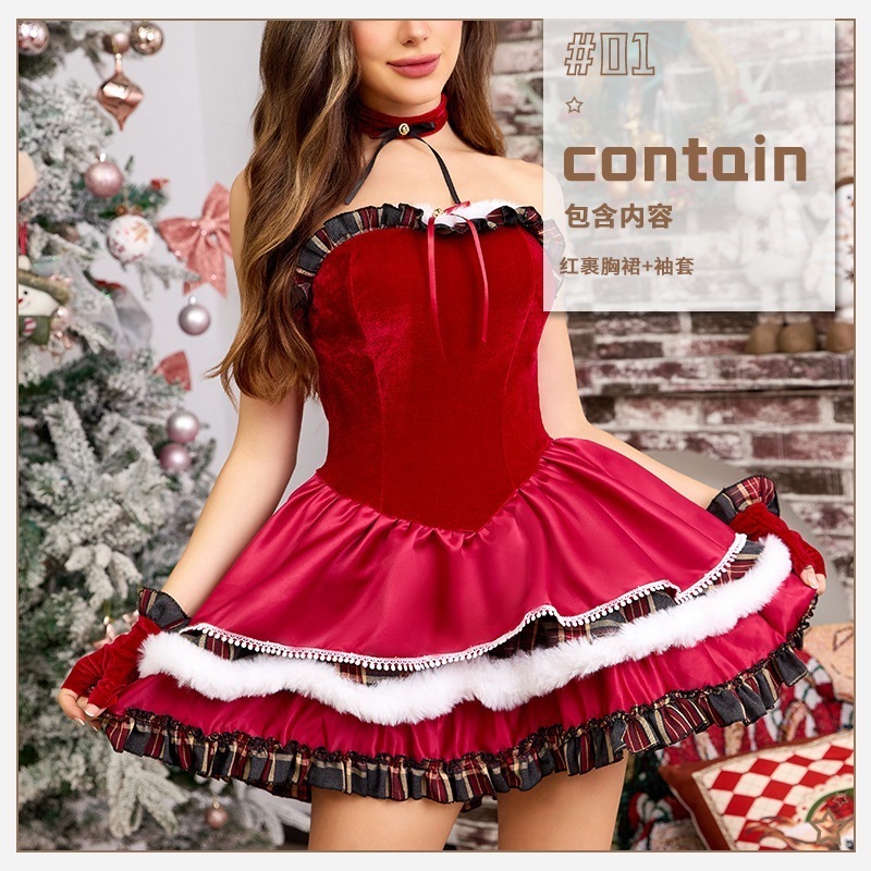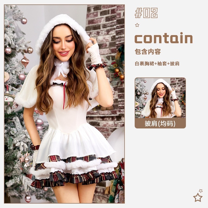 2025年のクリスマス衣装:ロリータ風のセクシーなストラップレスの新年ローブケープ雪だるまドレス