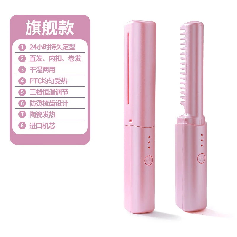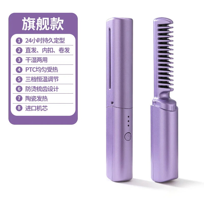 ワイヤレスストレートアイロンマイナスイオンヘアアイロン髪を傷めずに巻くストレート両用怠惰ヘアアイロン家庭用ポータブルヘアスタイリングコーム電子コームストレートクリップワイヤレスヘアアイロングリーン30