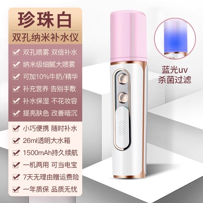 ナノスプレー補水器冷間噴霧機美容酸素注入顔蒸し器家庭用小型顔加湿携帯顔蒸し器二孔パールホワイト30%までに制限