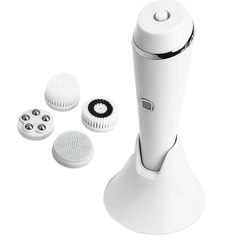 電動充電式多機能洗顔器 4 in 1 防水洗顔スピンブラシセット ディープクレンジング用 深層クレンジング 肌に優しいシリコンブラシマッサージローラー角質除去ブラシメイク落としブラシ付き30%までに制