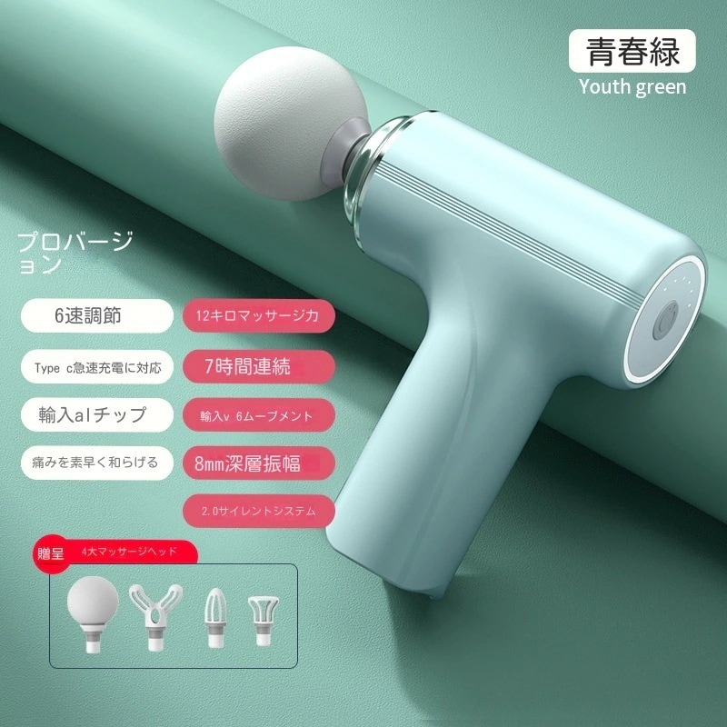 筋膜リリースガン MINIマッサージ器 6段階振動強力振動 筋膜ガン 最速4500回/分 筋肉リラック ハンディガン 4個ヘッド 全身リフレッシュ道具 Type-C充電式 静音 軽量 耐圧力15 kg