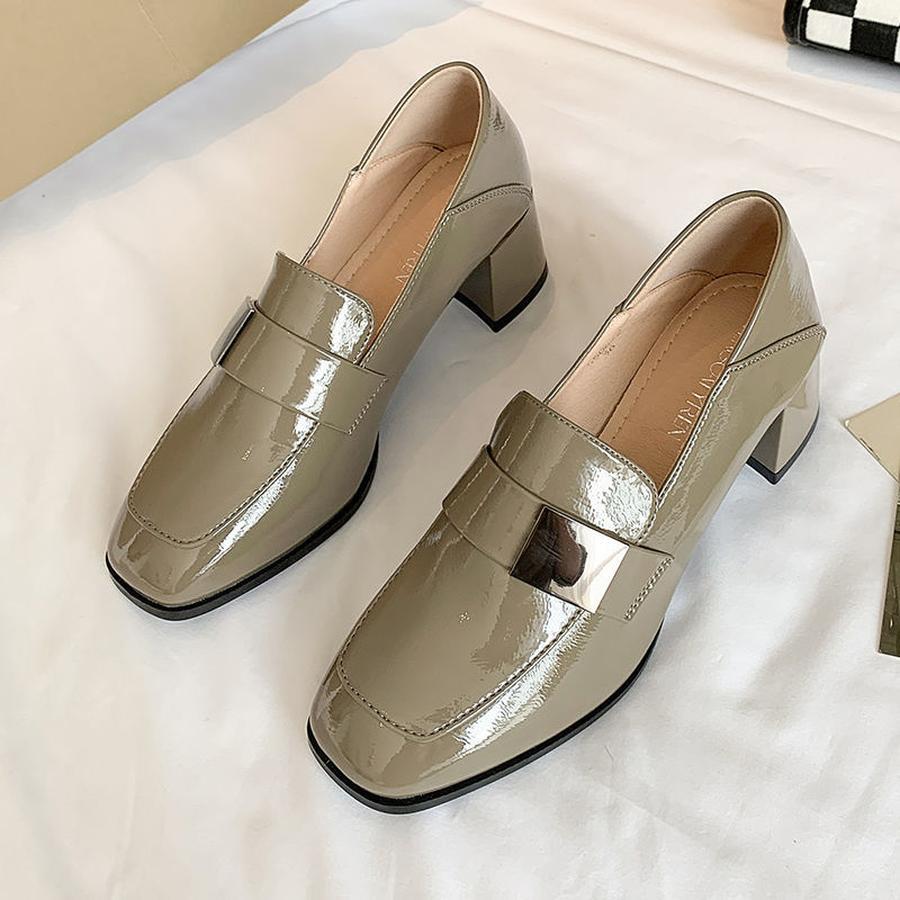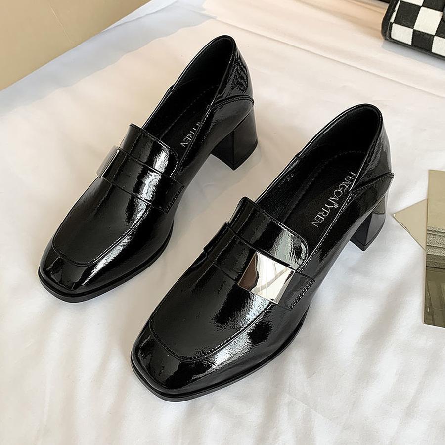 ローファー/新作/春と秋/パテントレザー/柔らかい太ヒール/太ヒール./ウェッジソール/