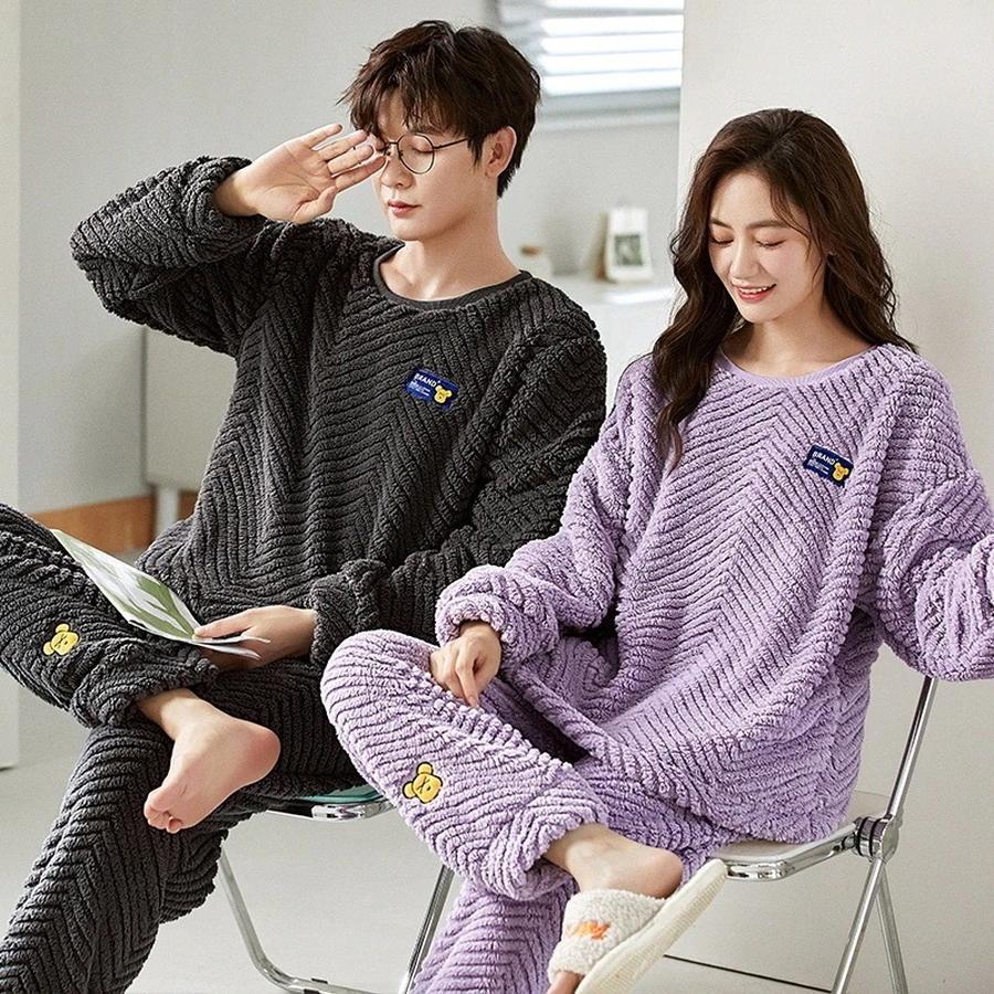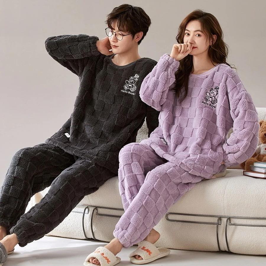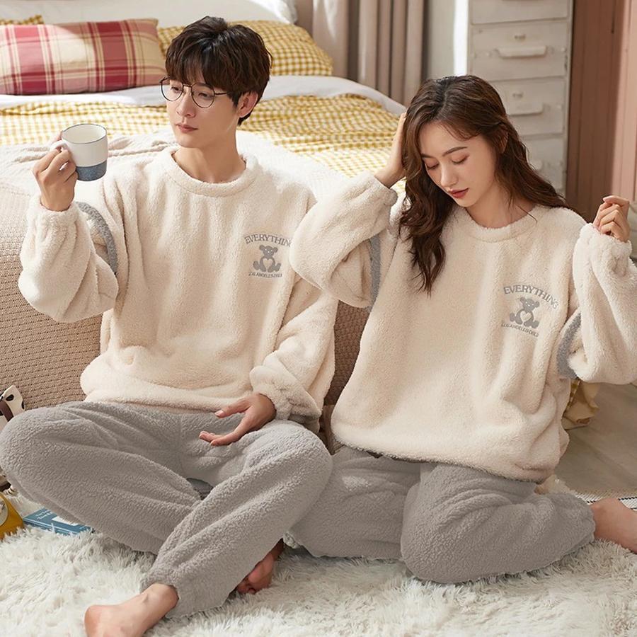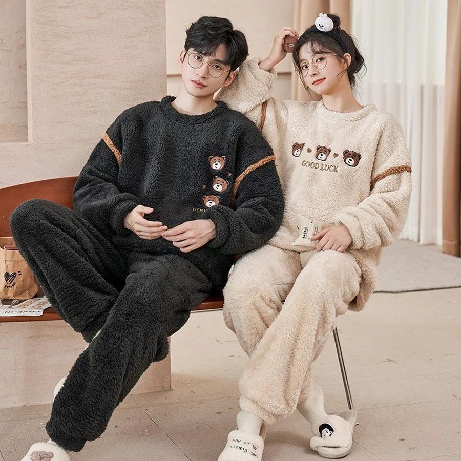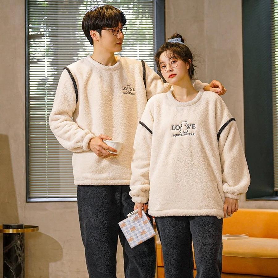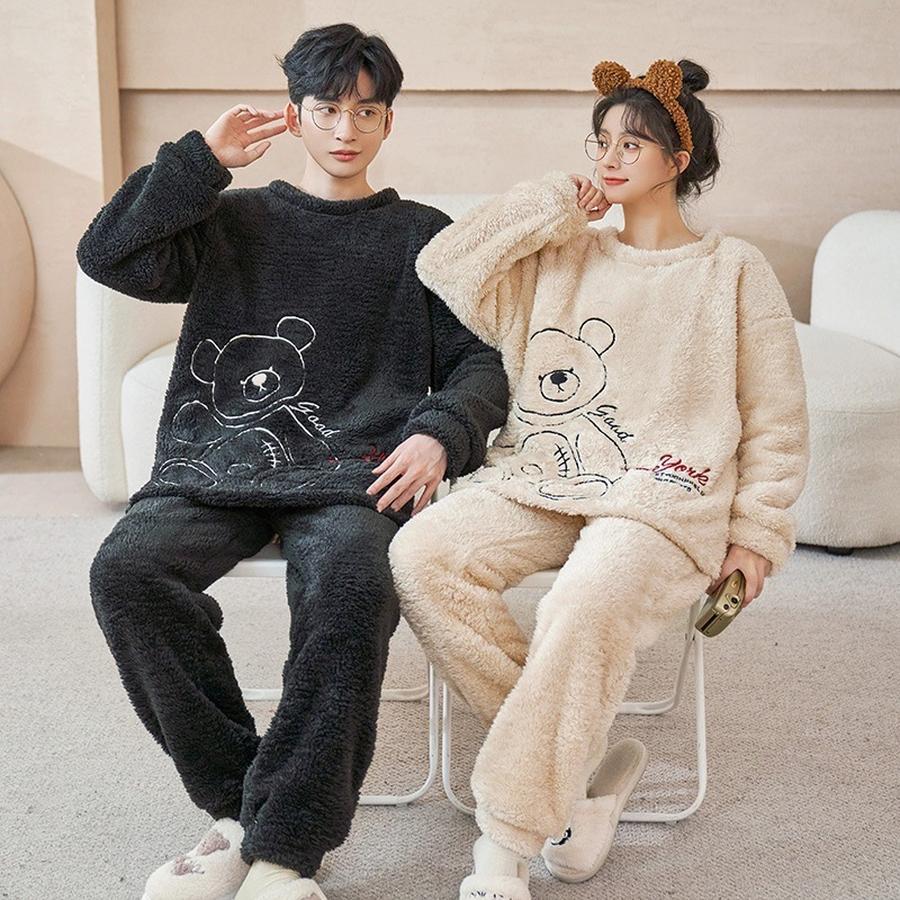 フランネル 防寒パジャマ ペアパジャマ パンツ上下セット部屋着 フランネル 秋冬もこもこ熊 カップルパジャマ レディース/メンズ ギフ 寝巻き フランネル ルームウェア 大きいサイズ