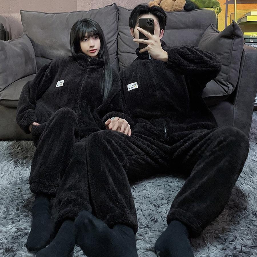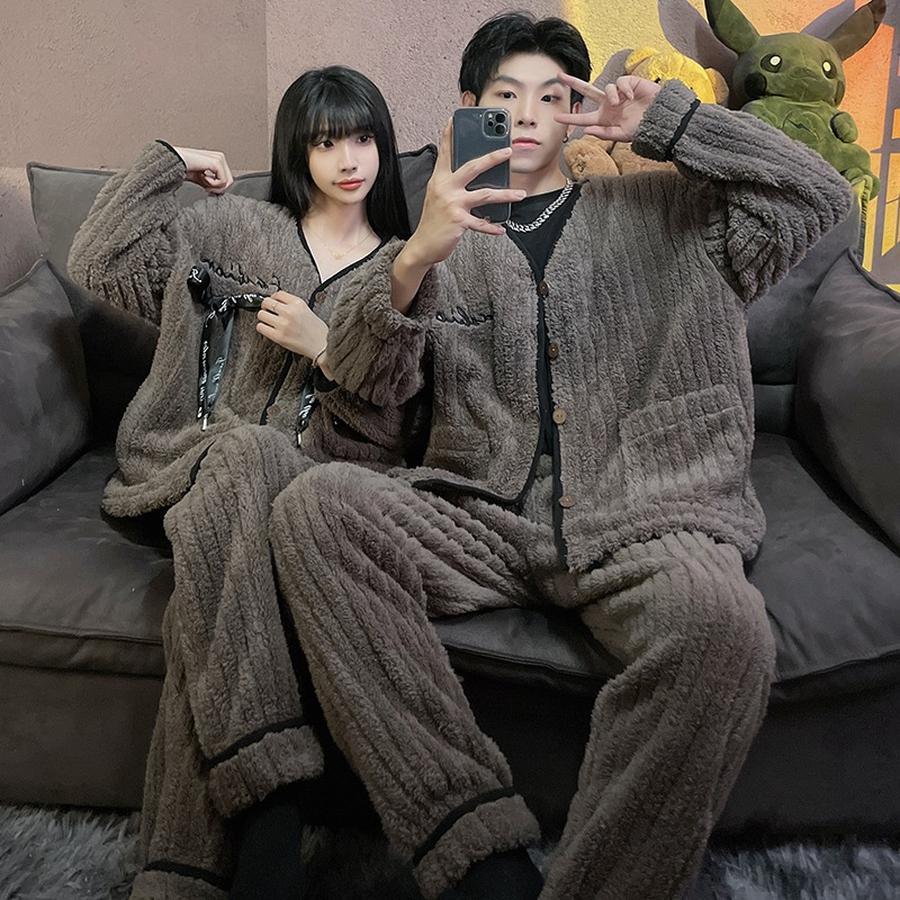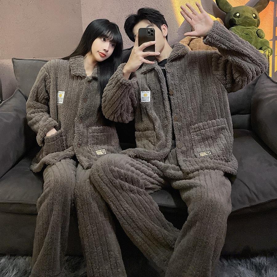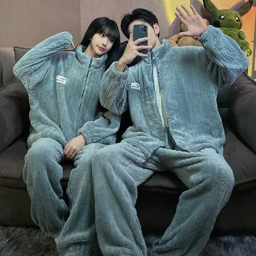 もこもこ ルームウェア メンズ 秋冬新作 前開き 部屋着 ルームウェア 冬 パジャマ 上下セット プレゼント レディース 結婚祝い フランネル 長袖 ペアパジャマ