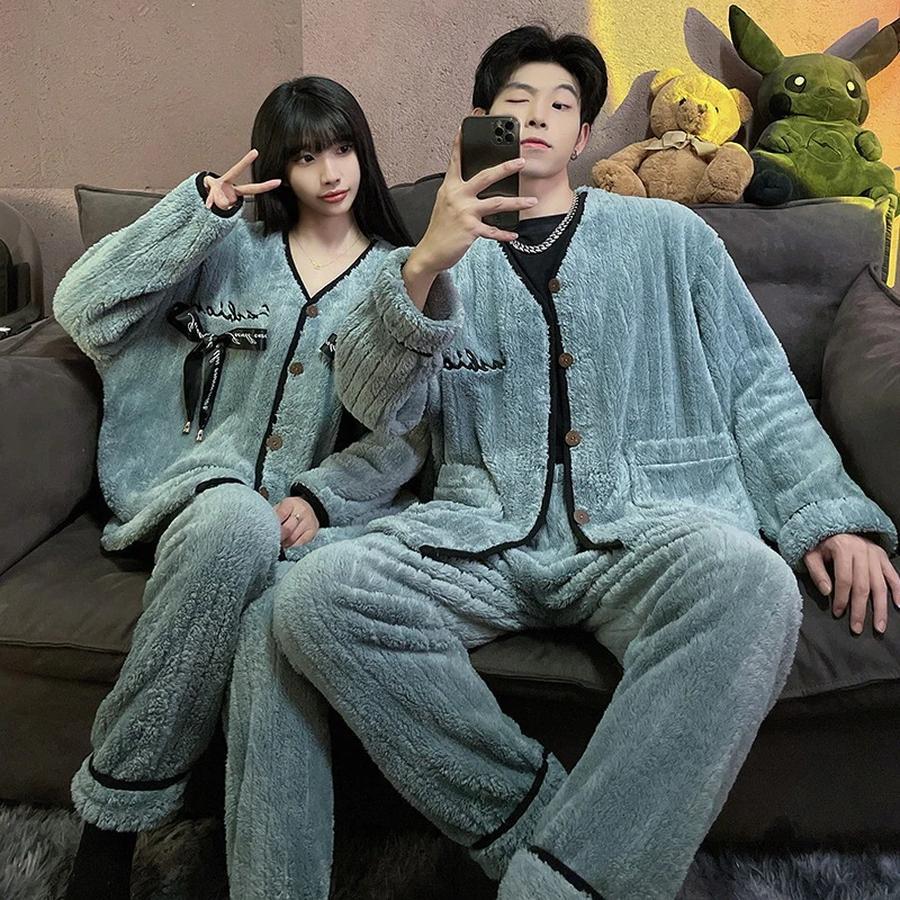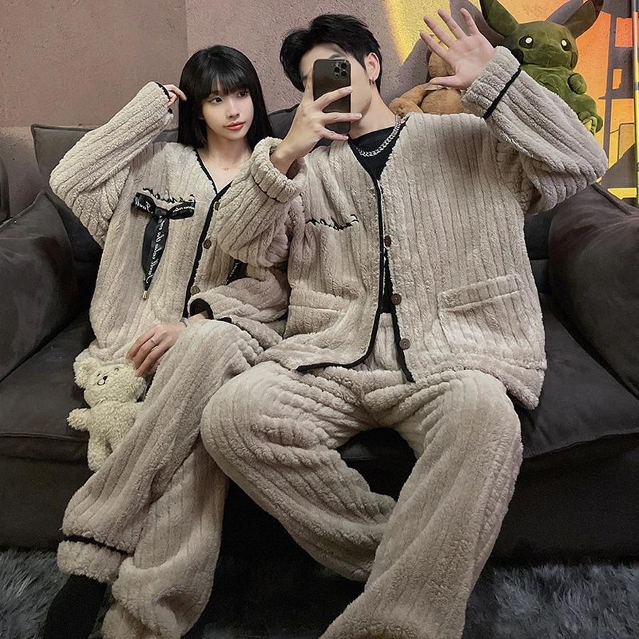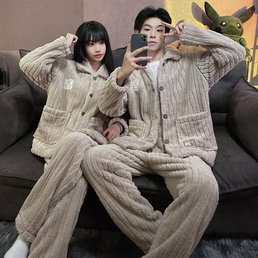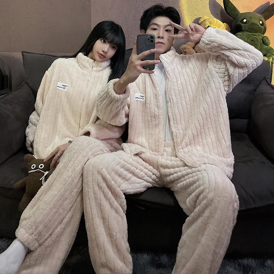 もこもこ ルームウェア メンズ 秋冬新作 前開き 部屋着 ルームウェア 冬 パジャマ 上下セット プレゼント レディース 結婚祝い フランネル 長袖 ペアパジャマ
