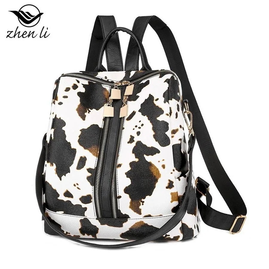 デイパック レディース ハンドバッグ 縦ファスナー 2WAY バックパック 即納 ミルク 今すぐ欲しい!豹柄
