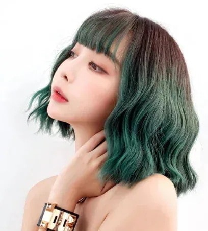グラデーションポラリスグリーンリアリスティックコーンホットショートカーリーヘアウィッグ 女性韓国のファッションのかつら