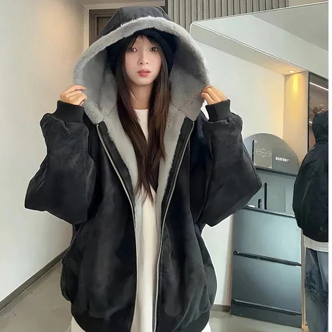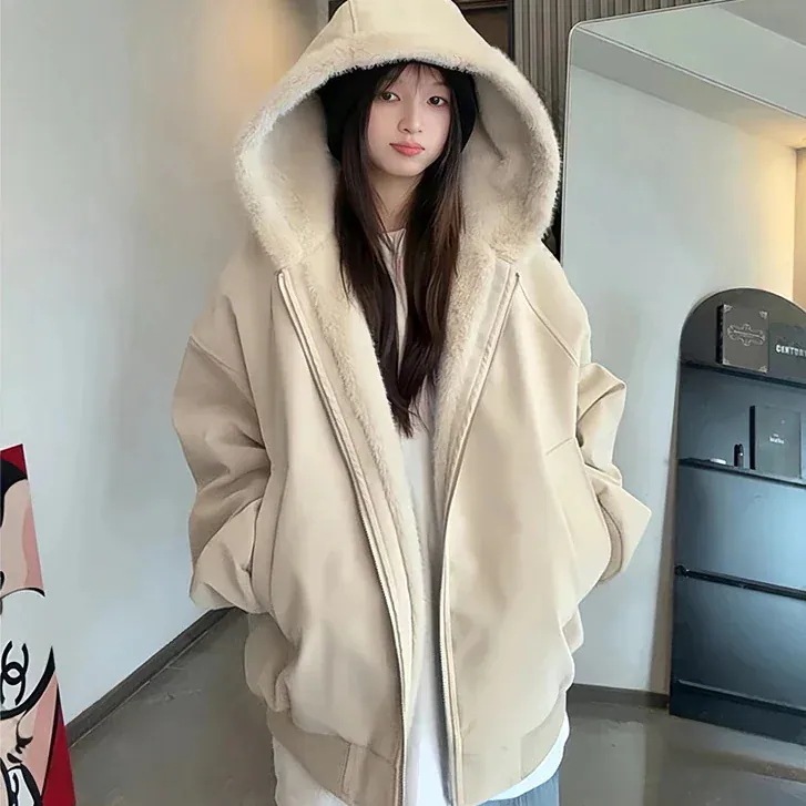 冬季 コットンコート 厚手 男女兼用 フード付き レザージャケット コットンジャケット アウター 【新品】フード付き カップル用 裏地付き