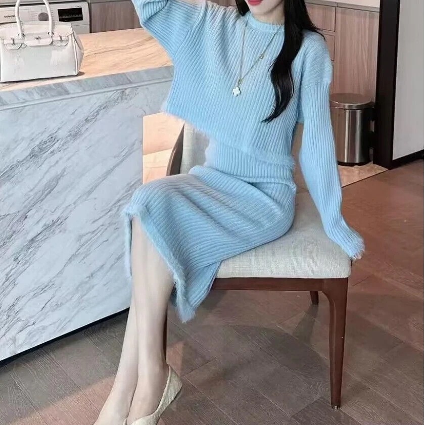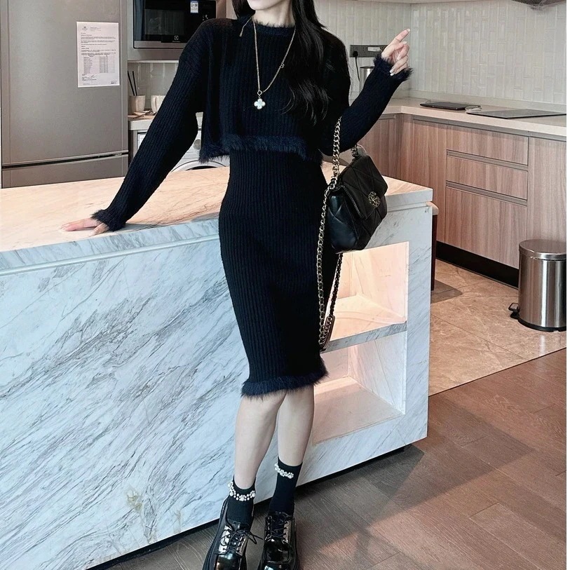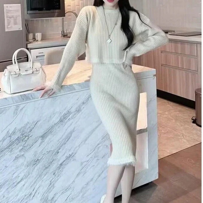 セットアップ ワンピース セット二点セット気質 女 高級感 2025秋冬ニットロングワンピース カシミヤタッチ