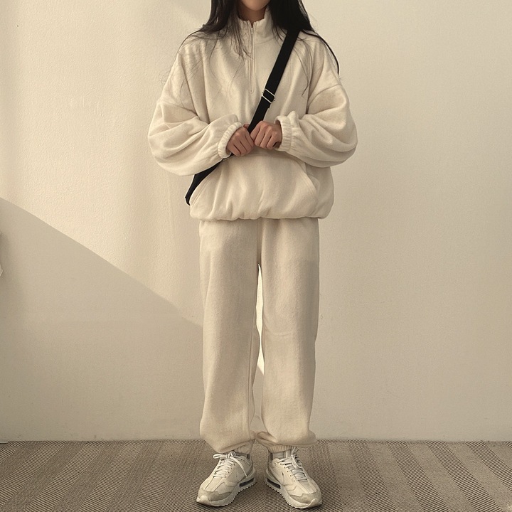【室内用・室外対応】2025 韓国 トップス 冬 厚手 セットアップ 着痩せ 大きいサイズ カジュアル 秋 ロングパンツ グレー ゆったり セットアップ ウェット