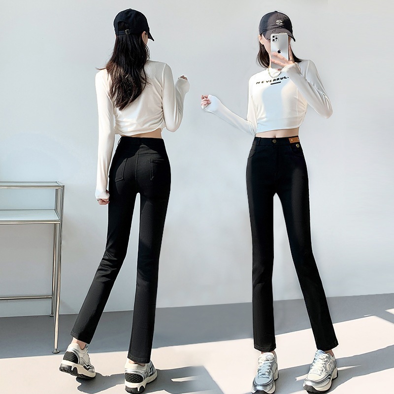 ジーンズ スリミング ストレート ヒップアップ レディース デニムパンツ ワイドパンツ ハイウエスト ブラックズボン 新作 小柄 かっこいい!スラックスパンツ