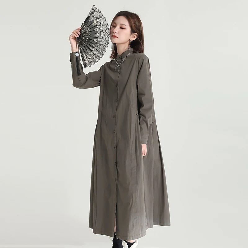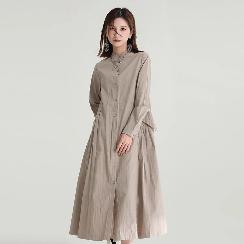 ロングワンピース 長袖 秋服 日系 パーティードレスドレス綿麻 切り替え シャツワンピース イレギュラー ワンピース 無地 体型カバー