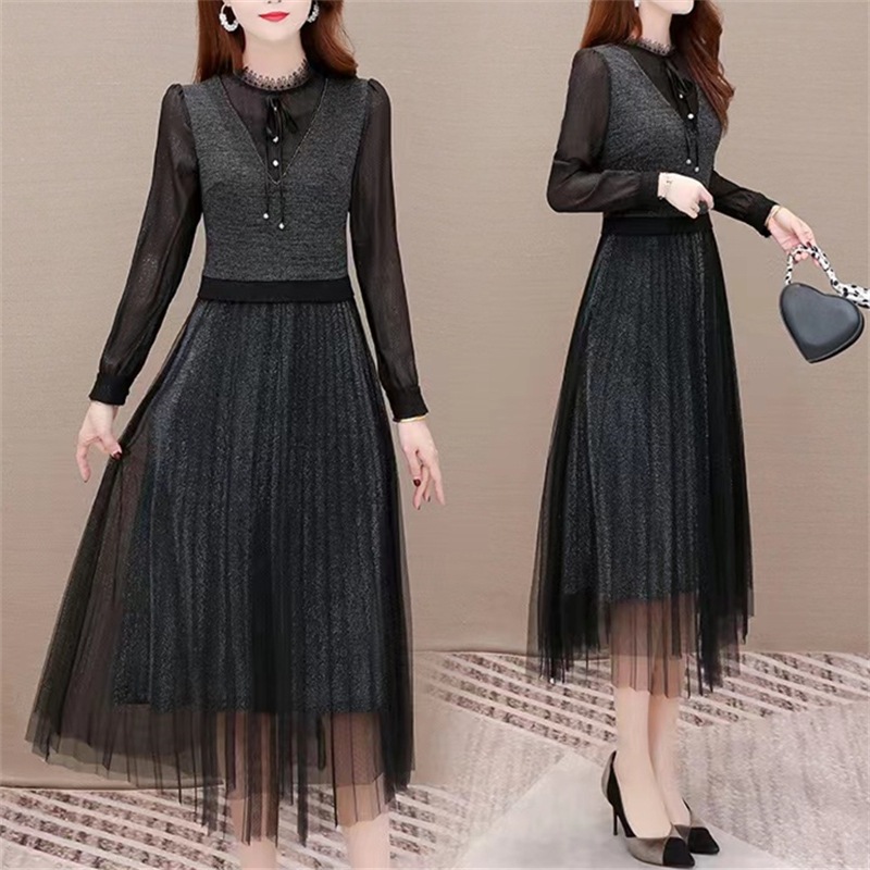 レディース フェイクレイヤード ワンピース 長袖ブラックインナー スウエット 韓国ファ 韓国 2025春 切り替え ゆったり 着やせ セットアップ ウエスト引き締め カジュアル キャミワンピース 気質