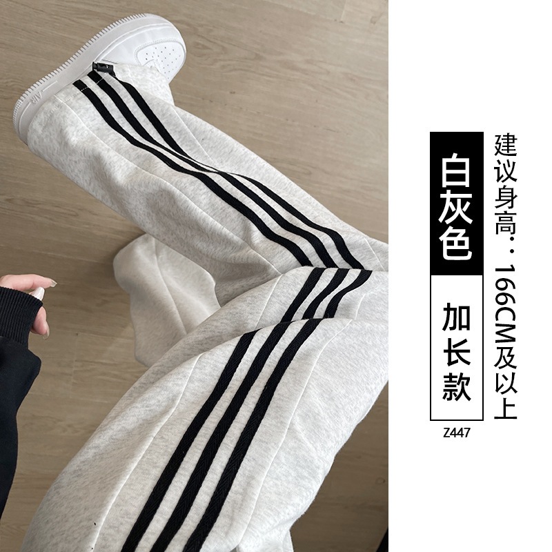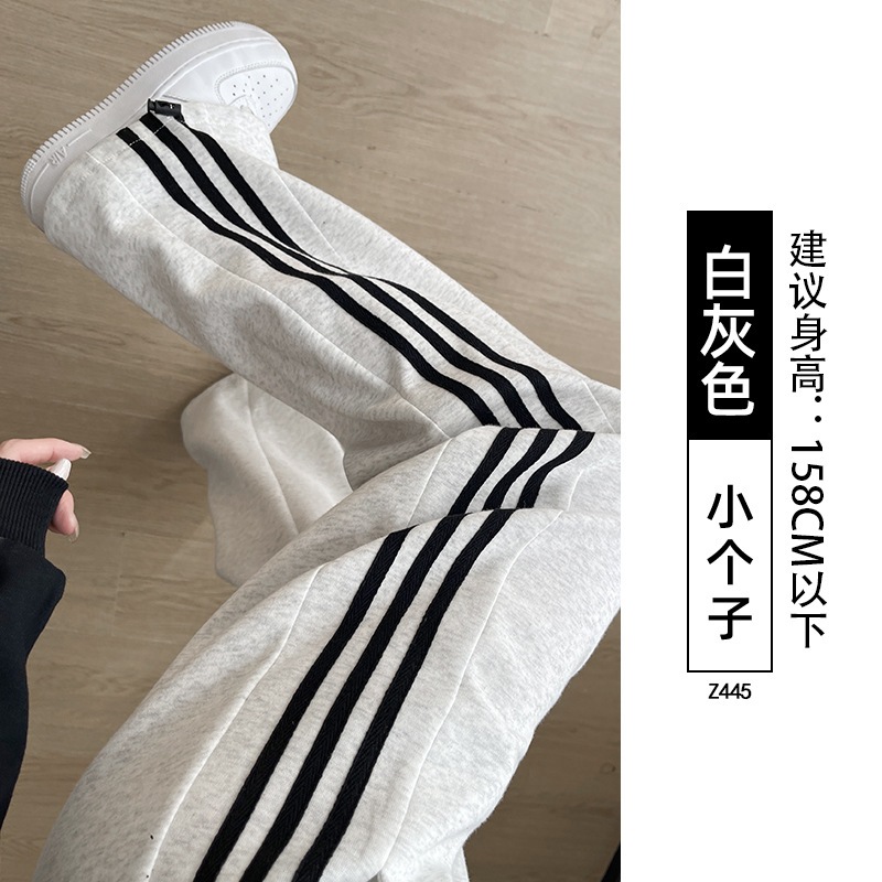 レディース ストライプ スウェットパンツ秋ストレートレッグスウェットパンツ小柄中学生テーパードゆったりワイドレッグ カジュアルパンツ