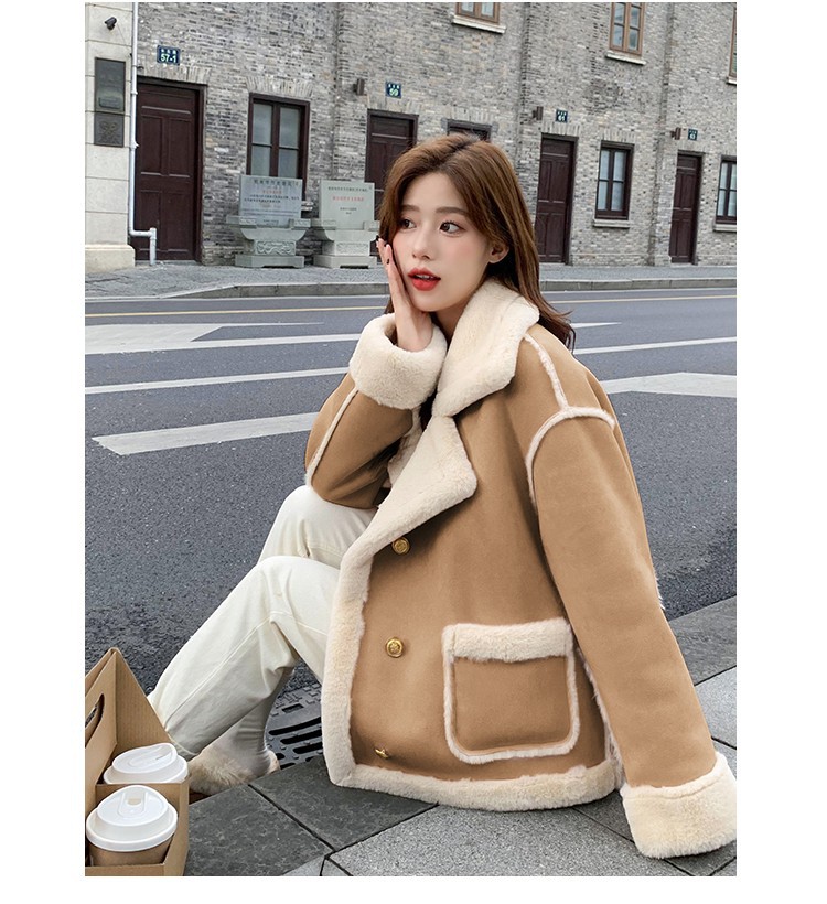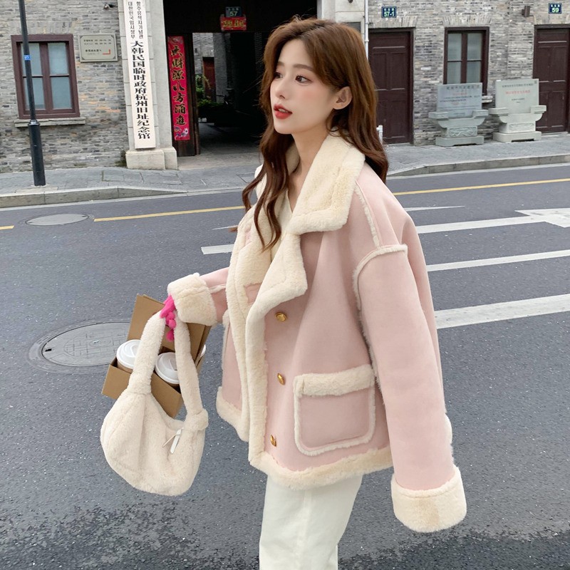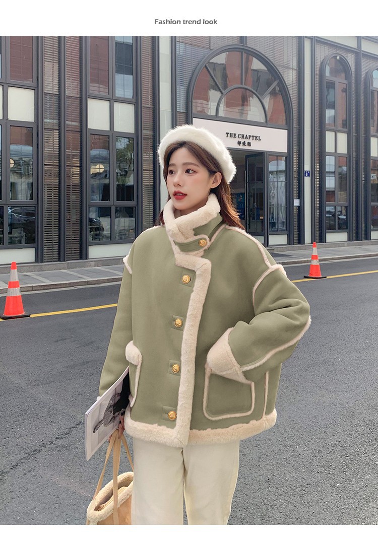 環境に優しいラムウールの厚手の暖かいコート小柄な女性に多用途秋冬用シアリングスタンドカラートップ