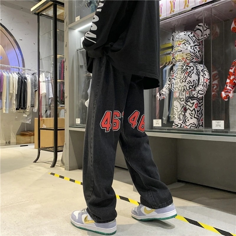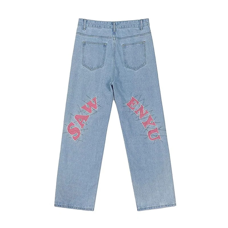 メンズ服 スラックスパンツ プリント ワイドパンツ ジーンズ百掛けパンク風ハイウエスト ドレープ感 ヒップホップスタイル ストレート