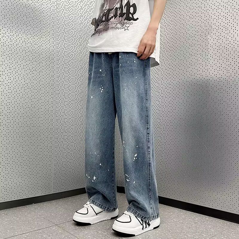 メンズ服 デニムボトムス スラックスパンツ 韓国ファッション インクをこぼす メンズ ジーンズ っこいい デニム ストレートズボン ins ゆったり ワイドパンツ メンズズボンか ロングズボン