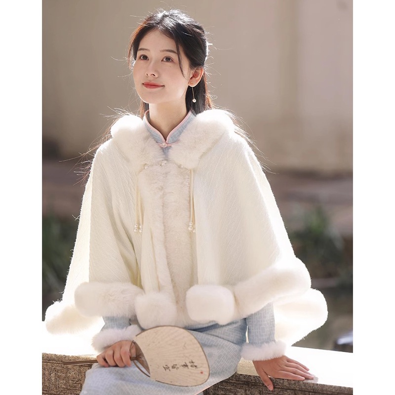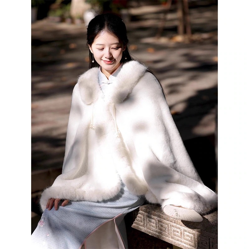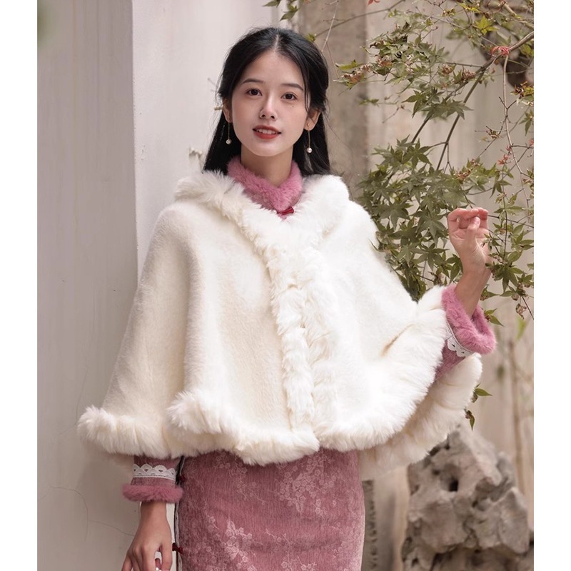 2025年秋冬 万能ミンクフリースショール/ヴィンテージケープ - ウェディングドレスやチャイナドレスなどと合わせやすい中国風アウタースカーフ