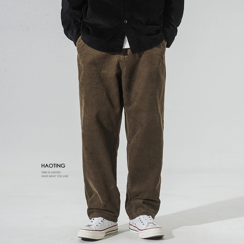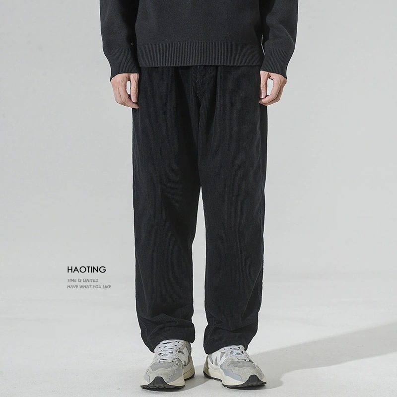 メンズ長裤 秋冬 厚手 ルーズフィット ストレート コーデュロイ カジュアルパンツ メンズ 百掛け ヴィンテージ ワークウェア ストライプ ワイドパンツ