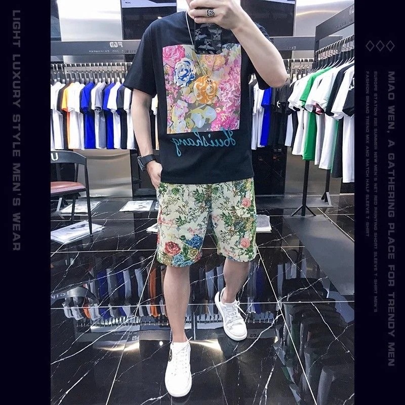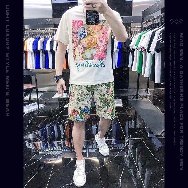 メンズ セットアップ 夏 メンズファッション セット プリント ショートパンツ 半袖 トレンド 個性 カジュアル スポーツ ライトラグジュアリー ツーピース