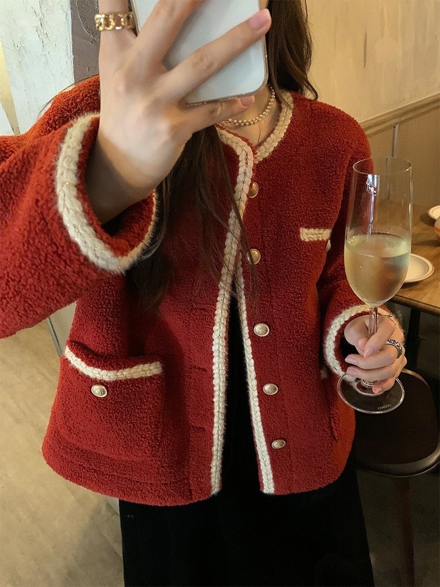 赤い子羊ぬいぐるみ女性のデザインセンスニッチ ジャケット 秋冬の新しいスタイルプラスベルベットと厚い 冬アウター
