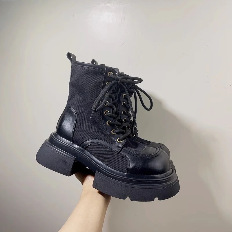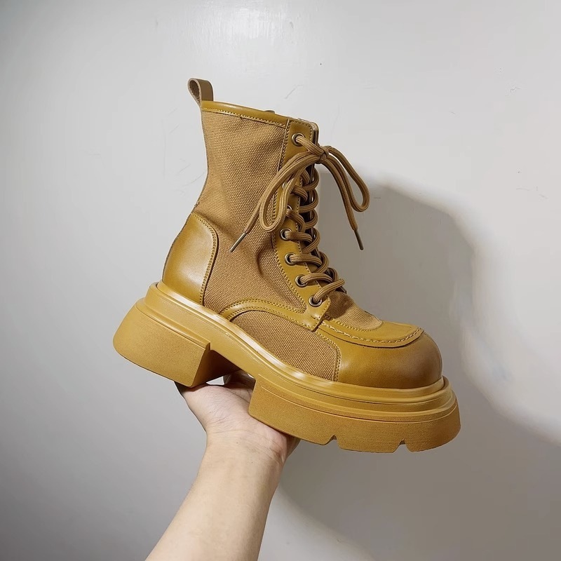 韓国イエローのマーチンブーツ女性2025年新型英国風ショートブーツキャンバスミッドカートン騎士ブーツチェルシーブーツ