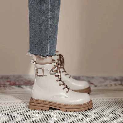 靴 レディース 春夏 マーディンブーツ レトロ ショットブーツ ホワイト 英伦風