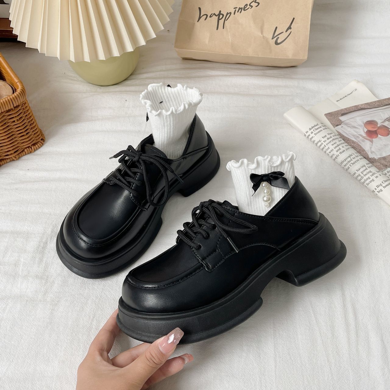 2025人気新作 革靴 百掛け ストラップ ローファー 厚底 快適 シンプル 軽量 韓国ファッション レトロ