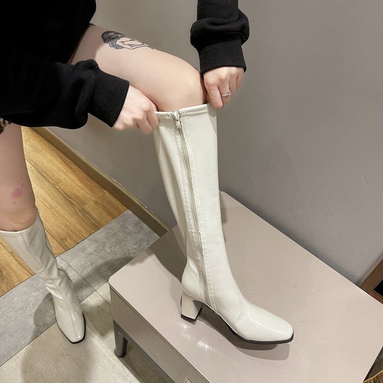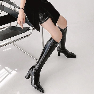ヒ一ルパンプスフランス風ポインテッドトゥ ブーツ弾力パテントレザー 母の日