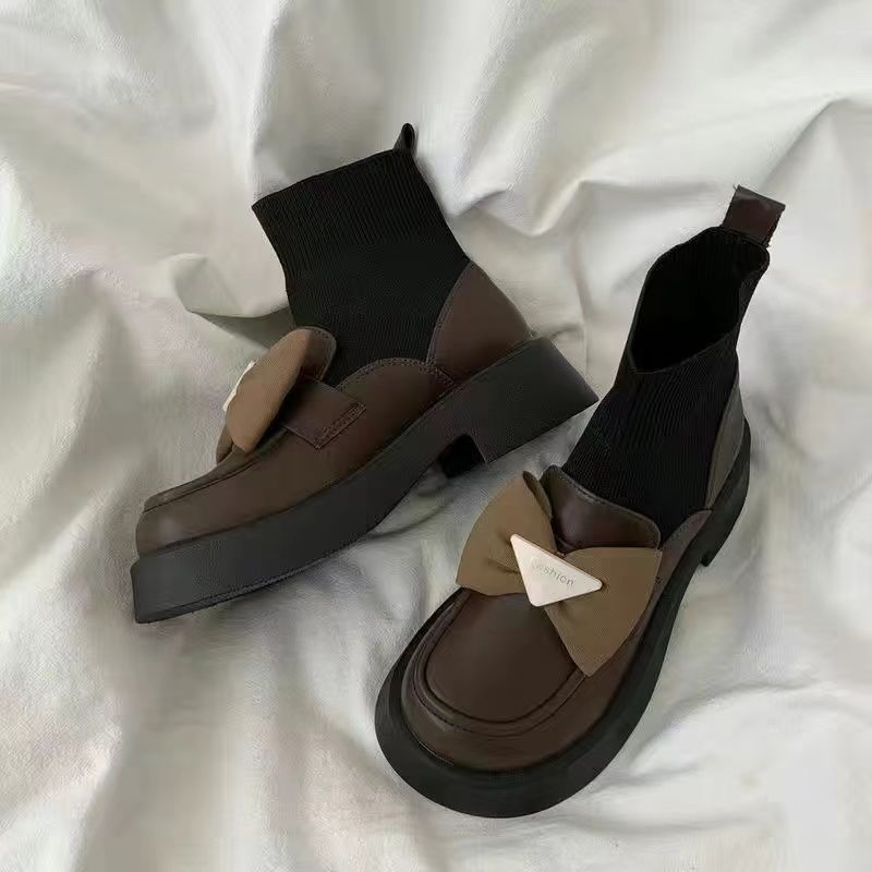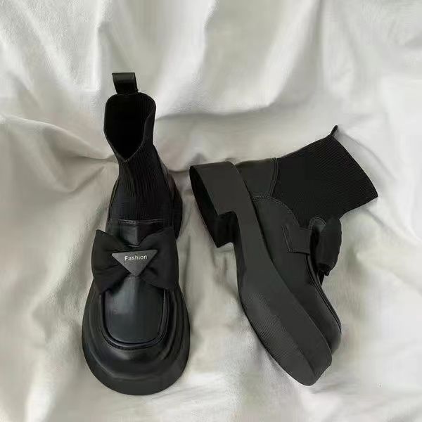 ショートブーツ 厚底シューズ おしゃれ 流行り 蝶結び 厚底靴 着痩せ 身長アップ 美脚 百掛け カジュアル ソックスブーツ マーディンブーツ 母の日