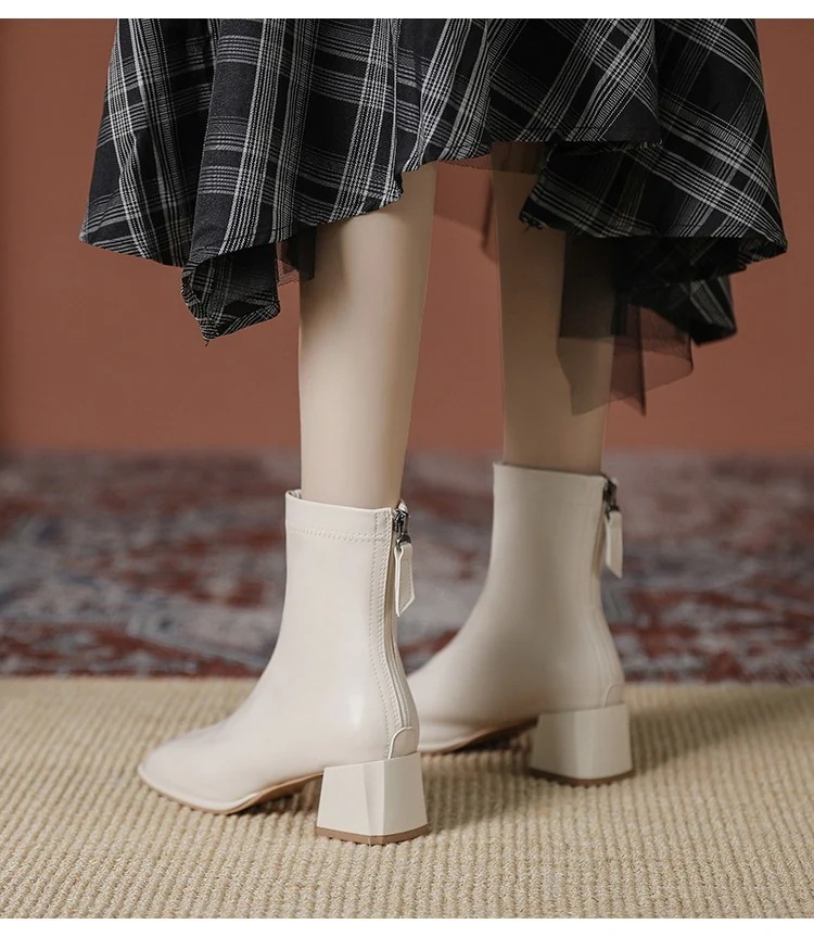 靴 レディース 春夏 太ヒール マーディンブーツ 厚底靴 レトロ ファスナー ショットブーツ ブラック フレンチヴィンテージ スクエアトゥ