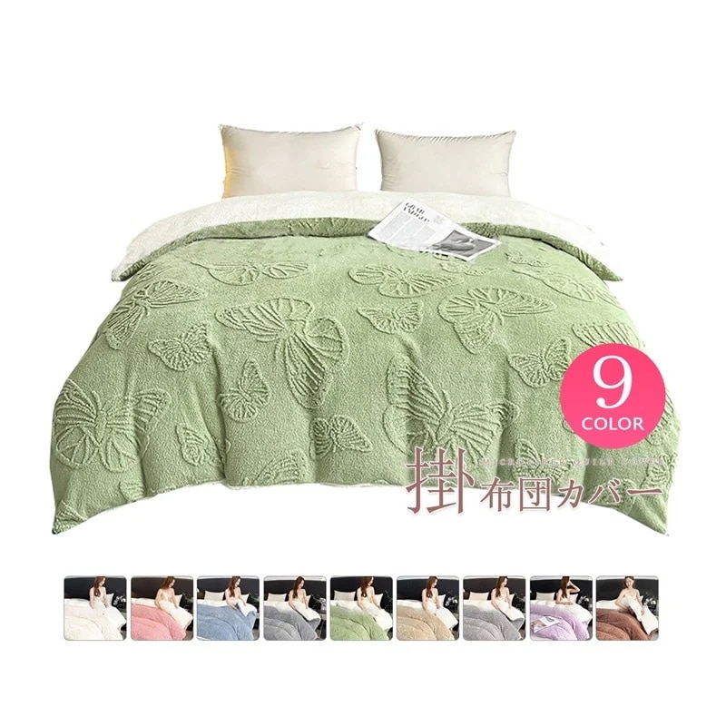 フランネル 布団カバー シングル ダブル 蝶柄 おしゃれ 厚手 AB両面 極暖 極細マイクロファイバー ボア 発熱毛布 裏起毛 あったか 毛玉なし 秋冬寝具 着脱簡単 抗菌加工 洗える30%までに制限