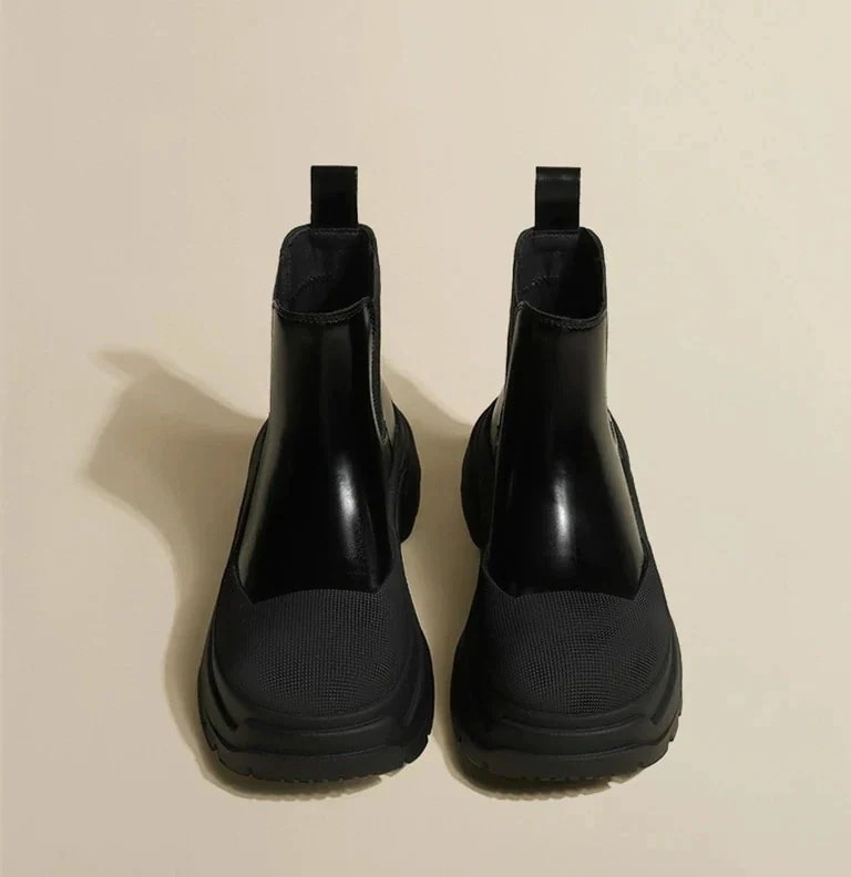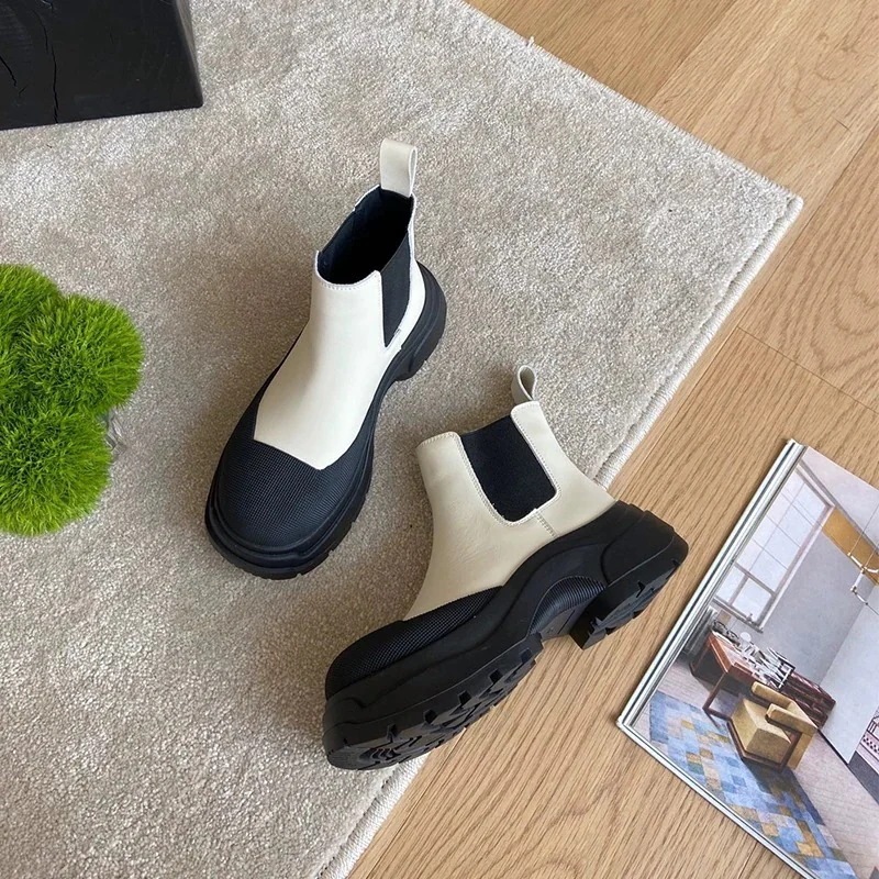 厚底シューズ 本革ショートブーツ女性2023年秋新作英伦風カジュアルマーチンブーツ厚底ミドルチェルシーブーツ