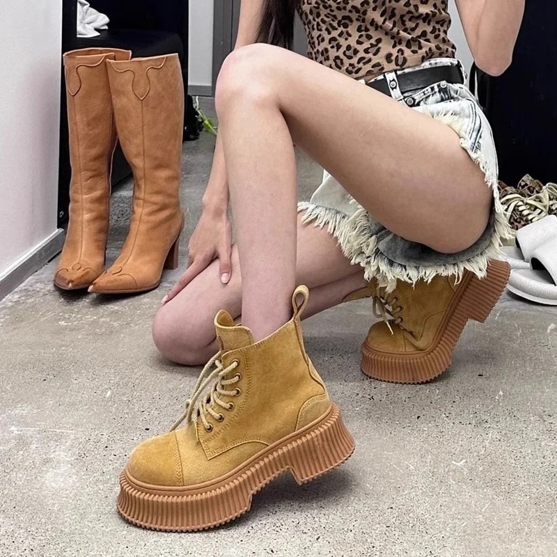 マーディンブーツ ショットブーツ 革靴 こうぐふう ラバー靴底 rock ストラップ厚底靴 身長アップ ミドルヒールシューズ3-5cm 太ヒール マット革 ラウンドトゥ 流行り ハンサム クールgir