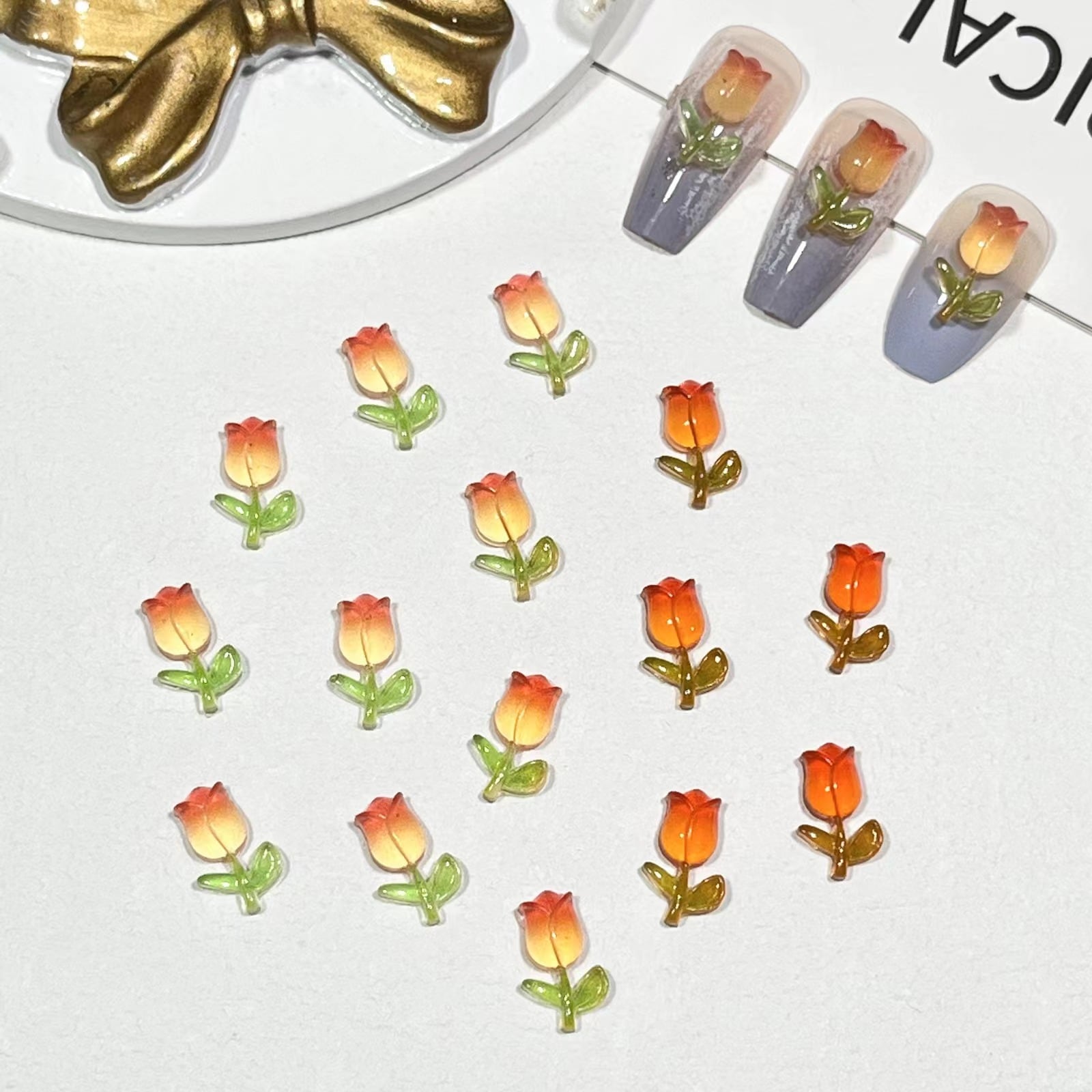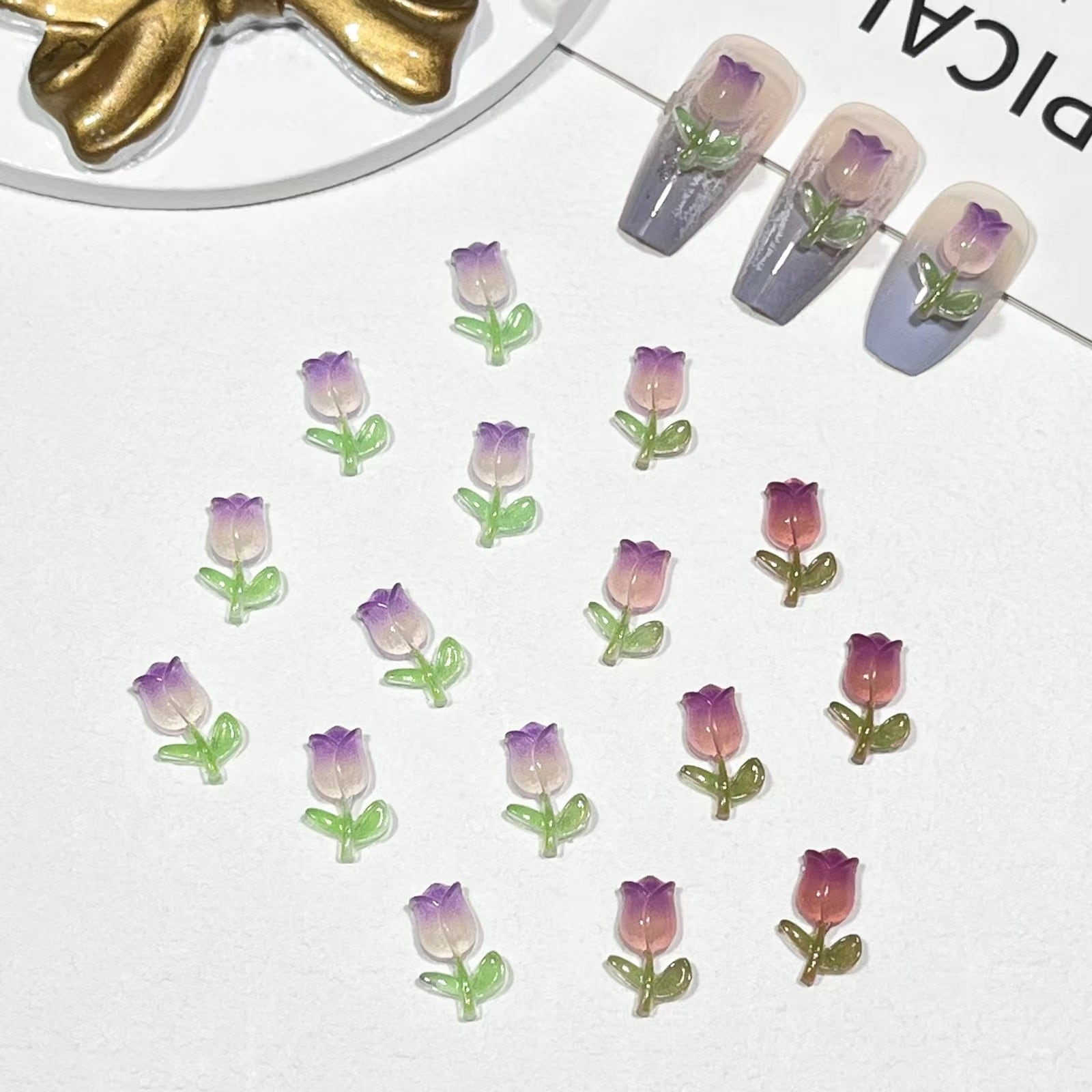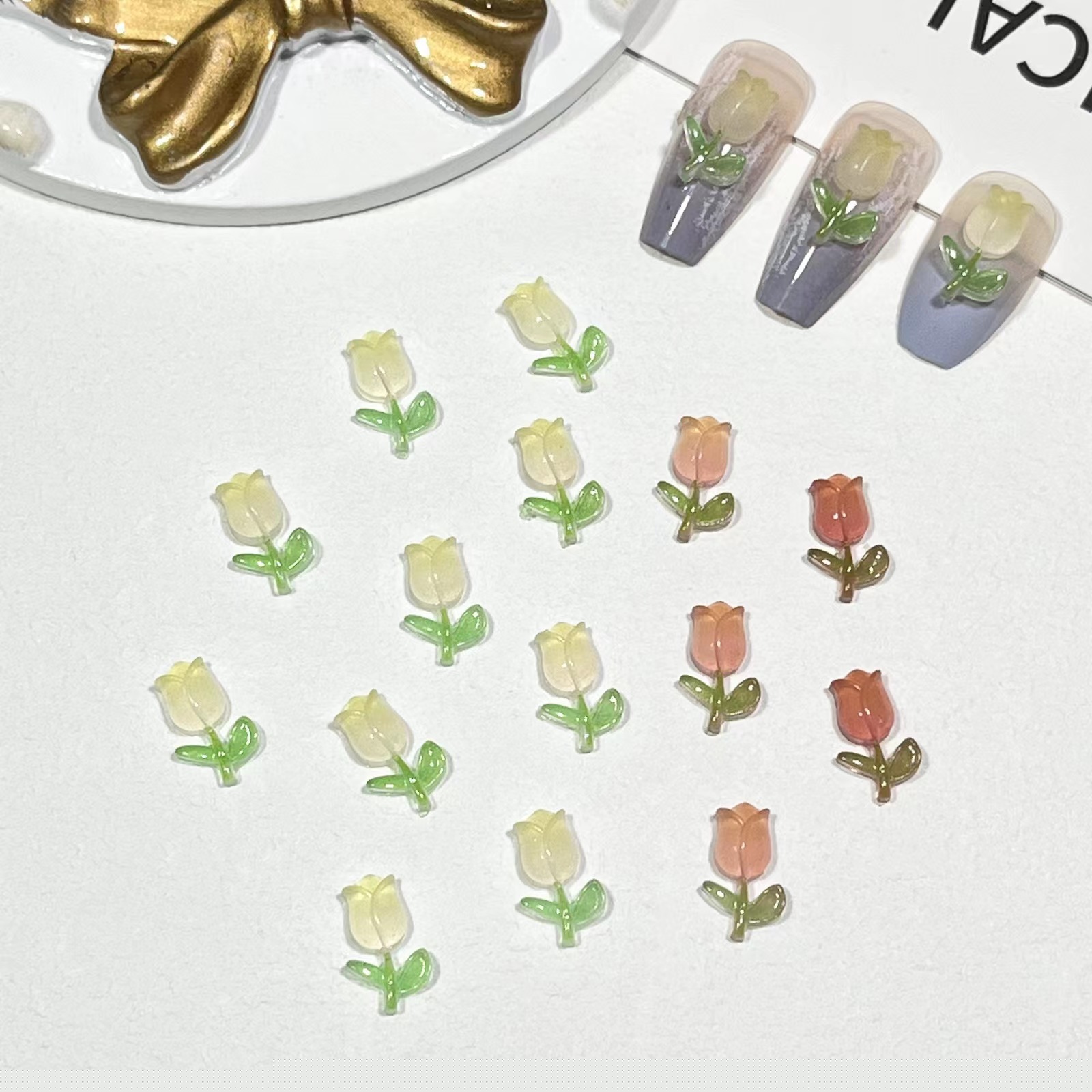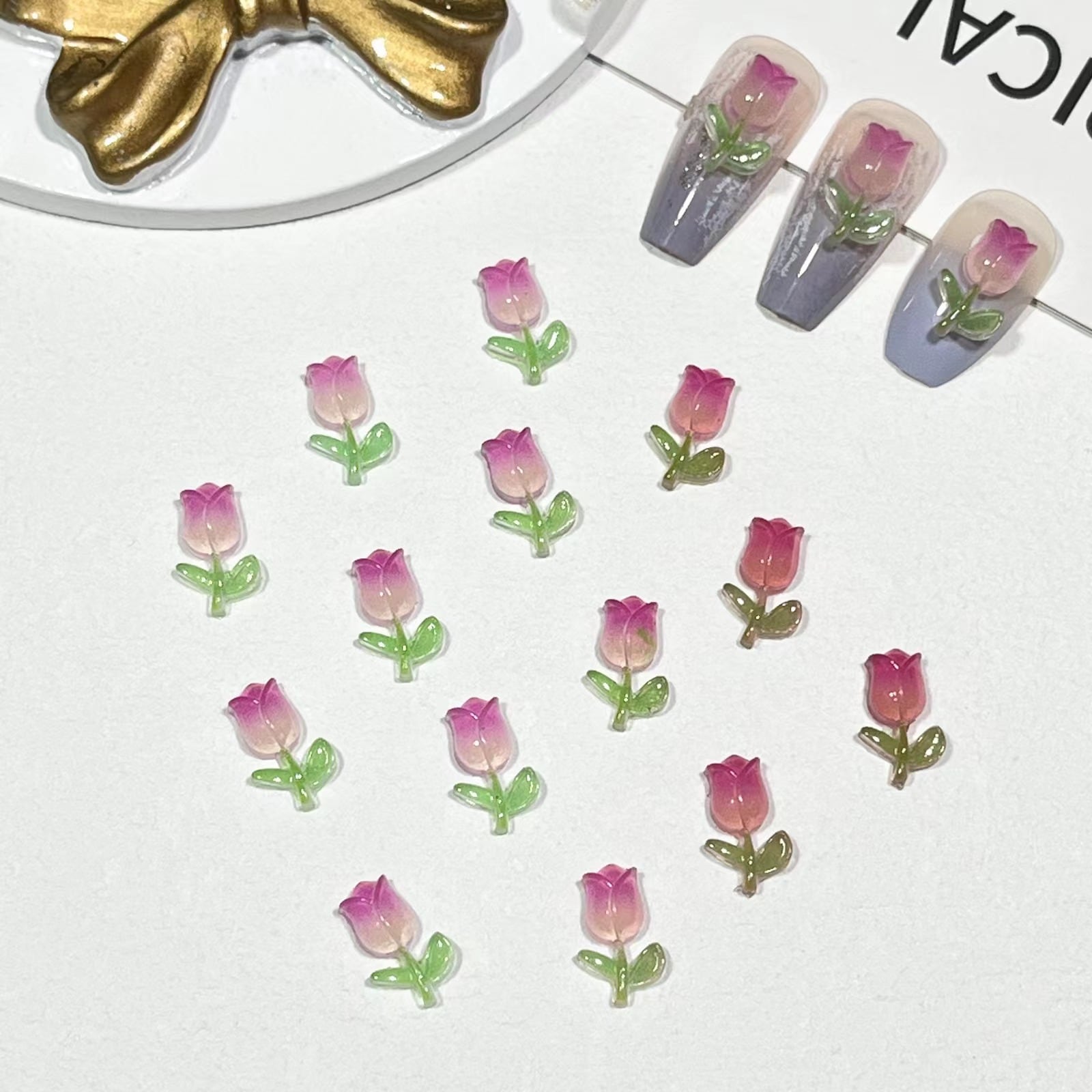 【20粒】3+1/5+2ナイトライトチューリップネイル小物グラデーションローズフラワーネイル素材バッグ