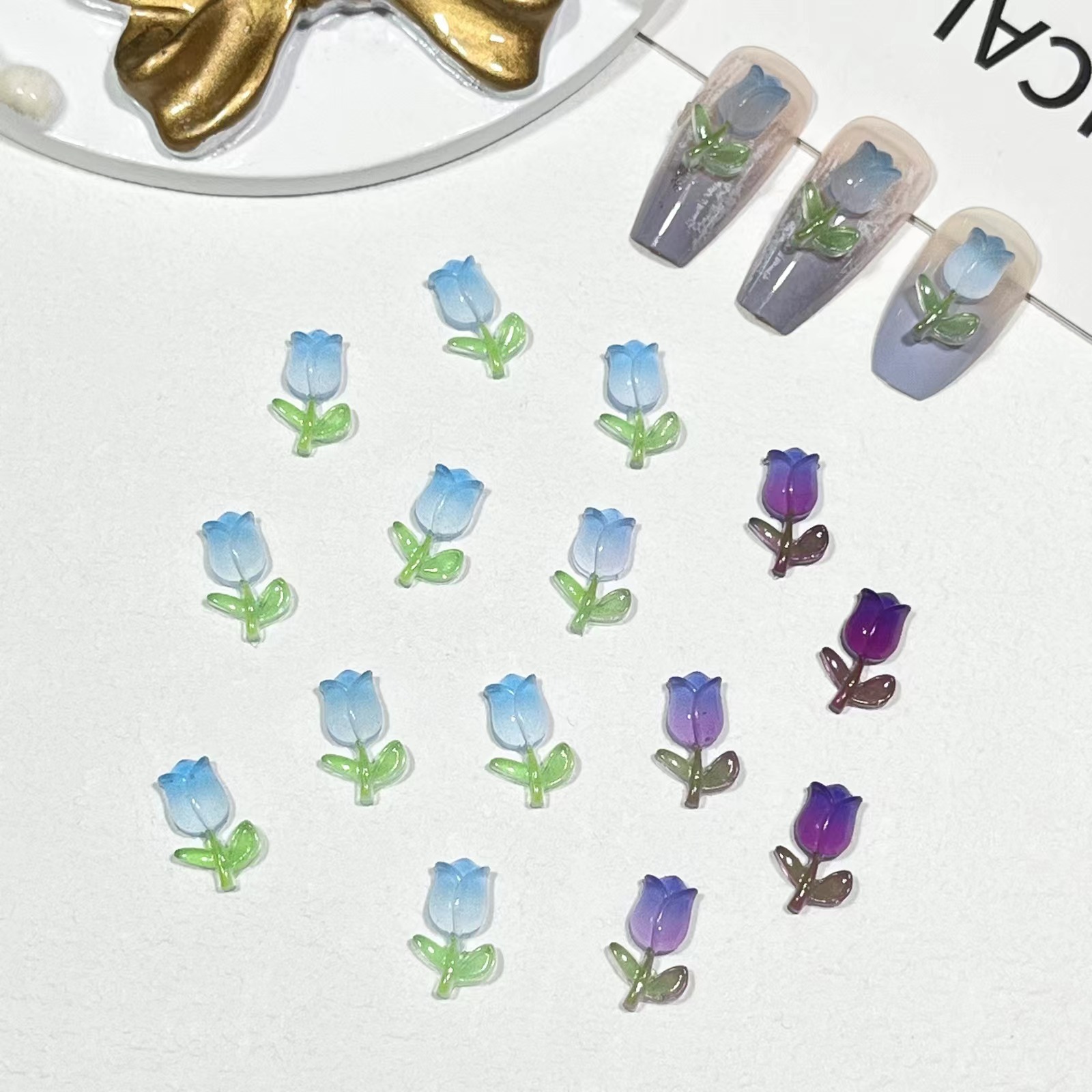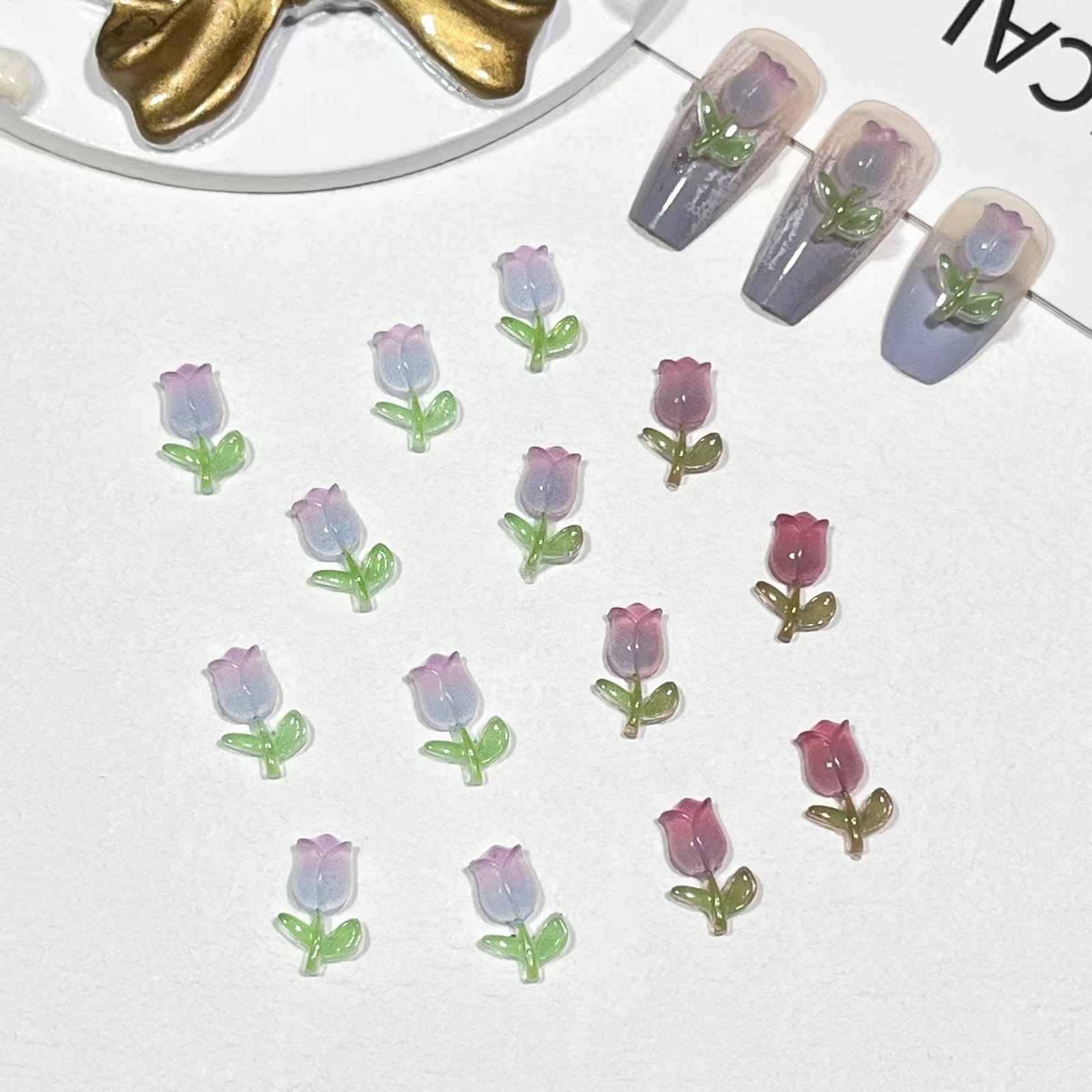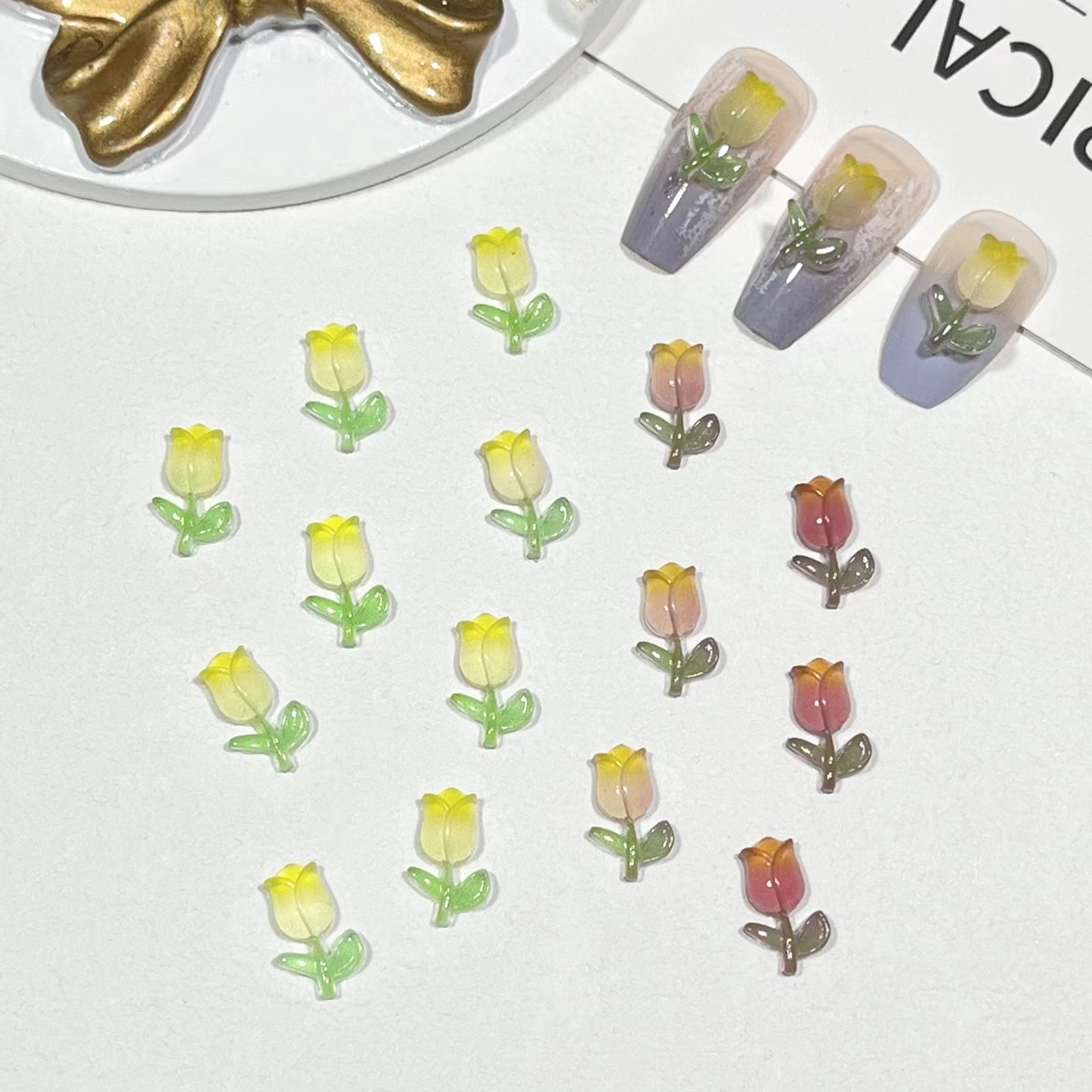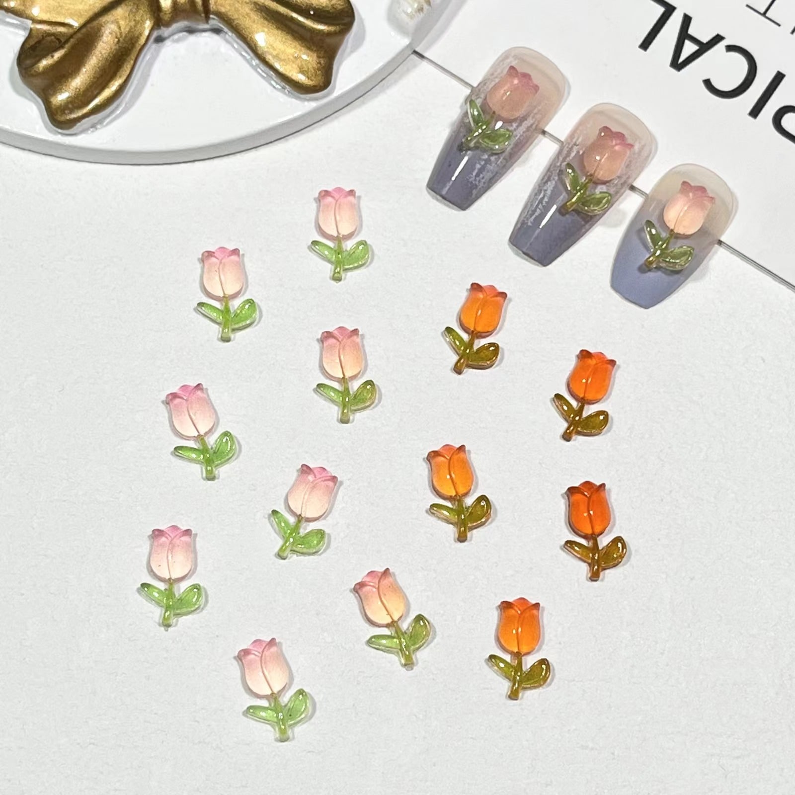 【20粒】3+1/5+2ナイトライトチューリップネイル小物グラデーションローズフラワーネイル素材バッグ