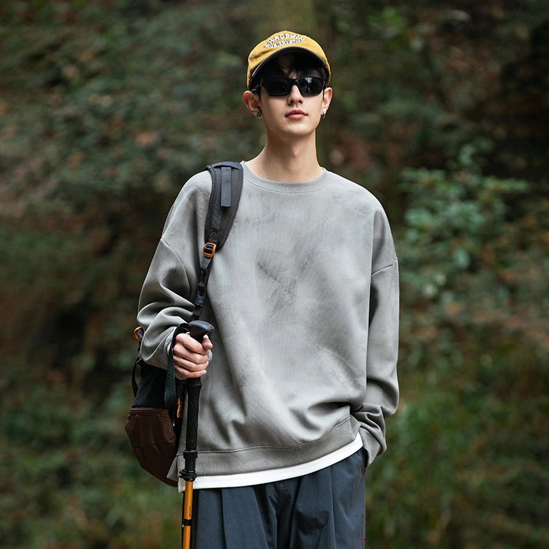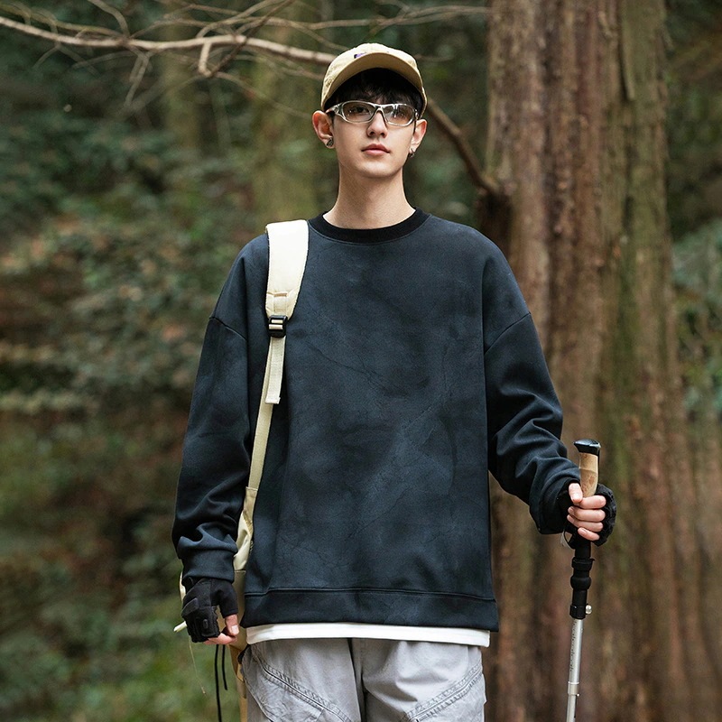 スウェット 偽2枚の染め衛衣男性秋冬の新アウトドアスポーツトレンド重ポンド男性長袖下着に服