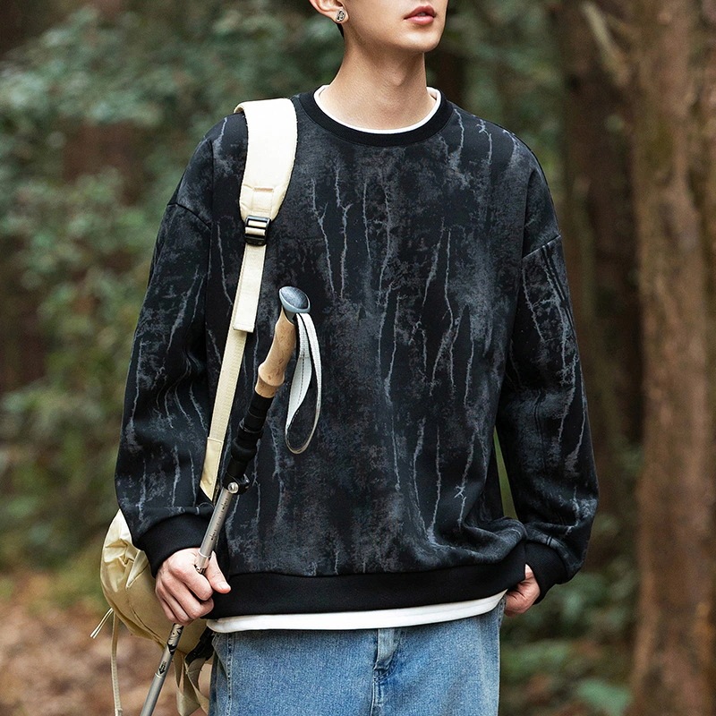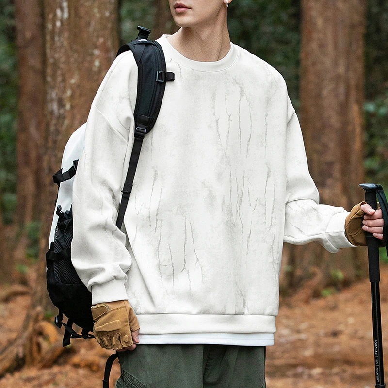 スウェット プリント男性用衛衣秋休暇長袖上着2枚男性用コート冬