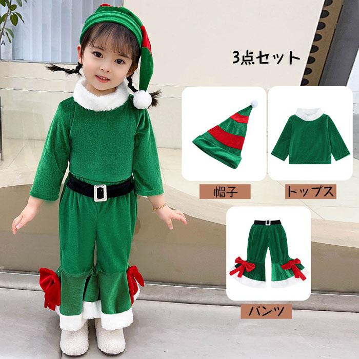 キッズ 可愛い 着ぐるみ 長袖 帽子付き おしゃれ 3点セット コスプレ衣装 仮装 サンタ クリスマス 女の子 ワンピース コスチューム 子供 サンタクロース 女児