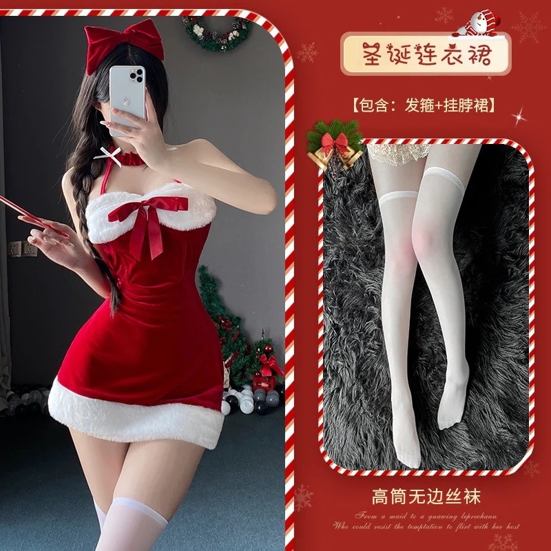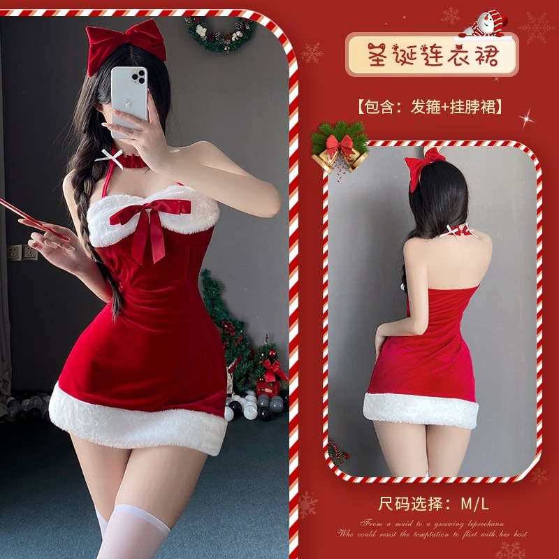 新入荷 可愛い コスプレ サンタコスプレ ネックストラップ赤ストラップワンピース セクシークリスマスコスプレ ステージ衣装