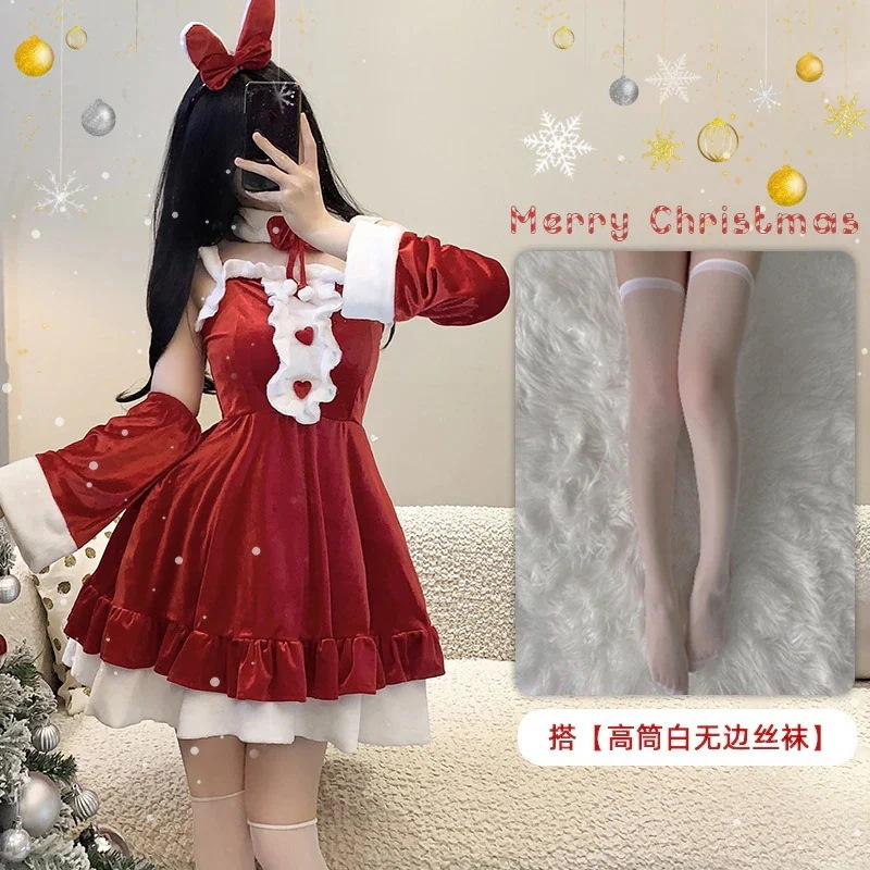 新入荷 可愛い コスプレ クリスマス衣装セクシー赤色ベルベットワンピース大サイズパーティーダンスパーティーバニーガールコスプレ衣装