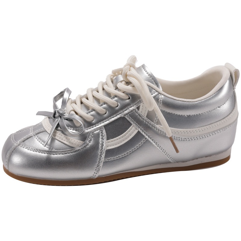 シルバーウェッジプラットフォームフラットドイツトレーニングシューズレディースシューズ2025新作秋夏カジュアルスポーツスニーカー
