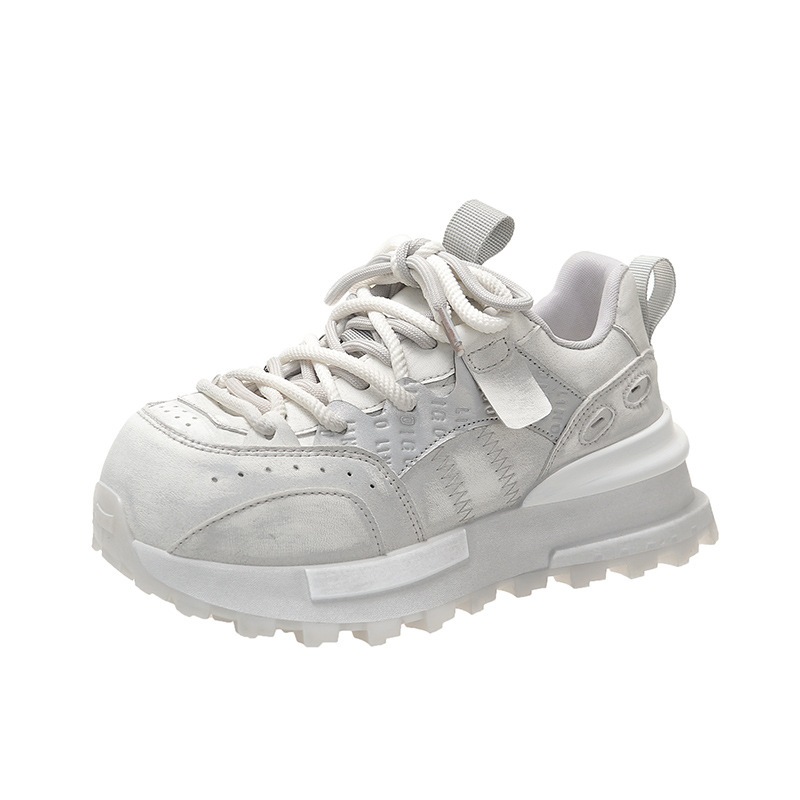 2025年秋冬新作 レトロ風 ダメージ加工 カジュアルシューズ 本革 厚底 万能 ダッドシューズ コルク レディース トレンドシューズ