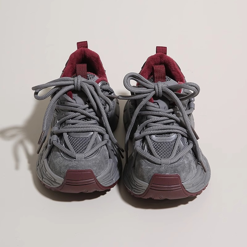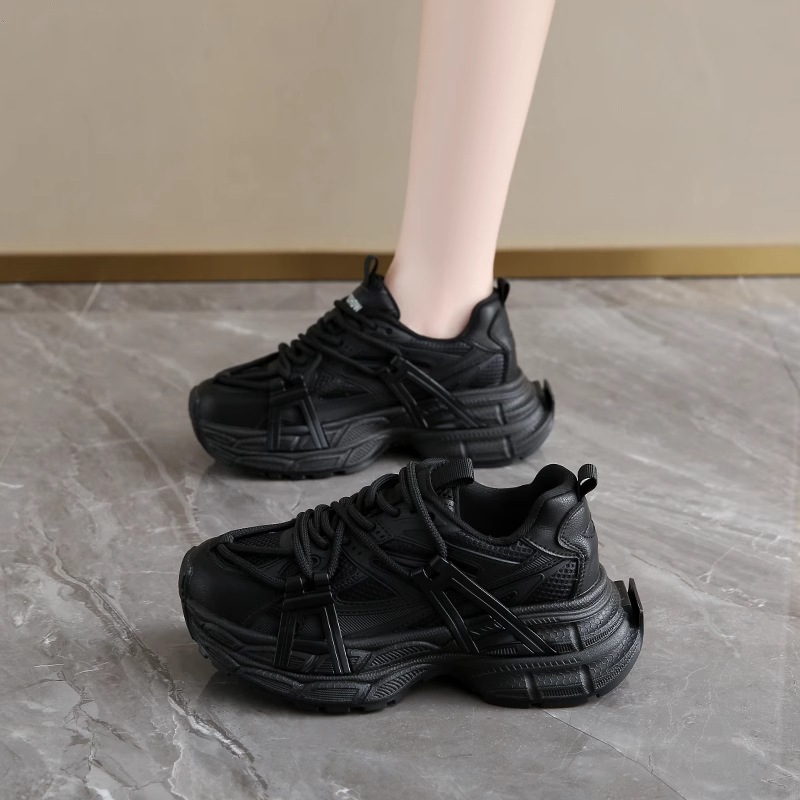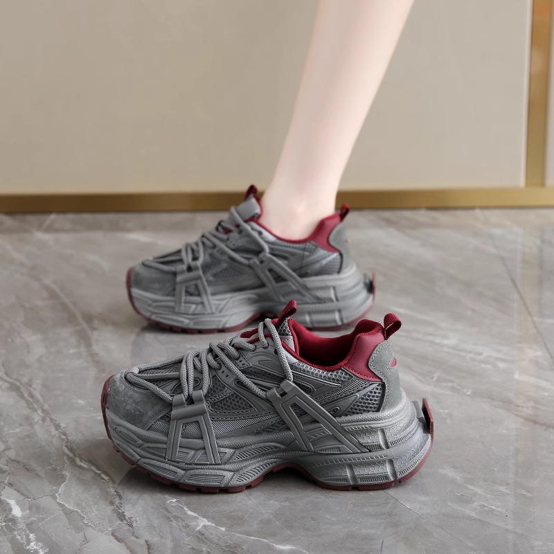 レディースチャンキースニーカー2025年夏の新スタイルメッシュ通気性グレーカジュアル万能スポーツシューズフリース裏地