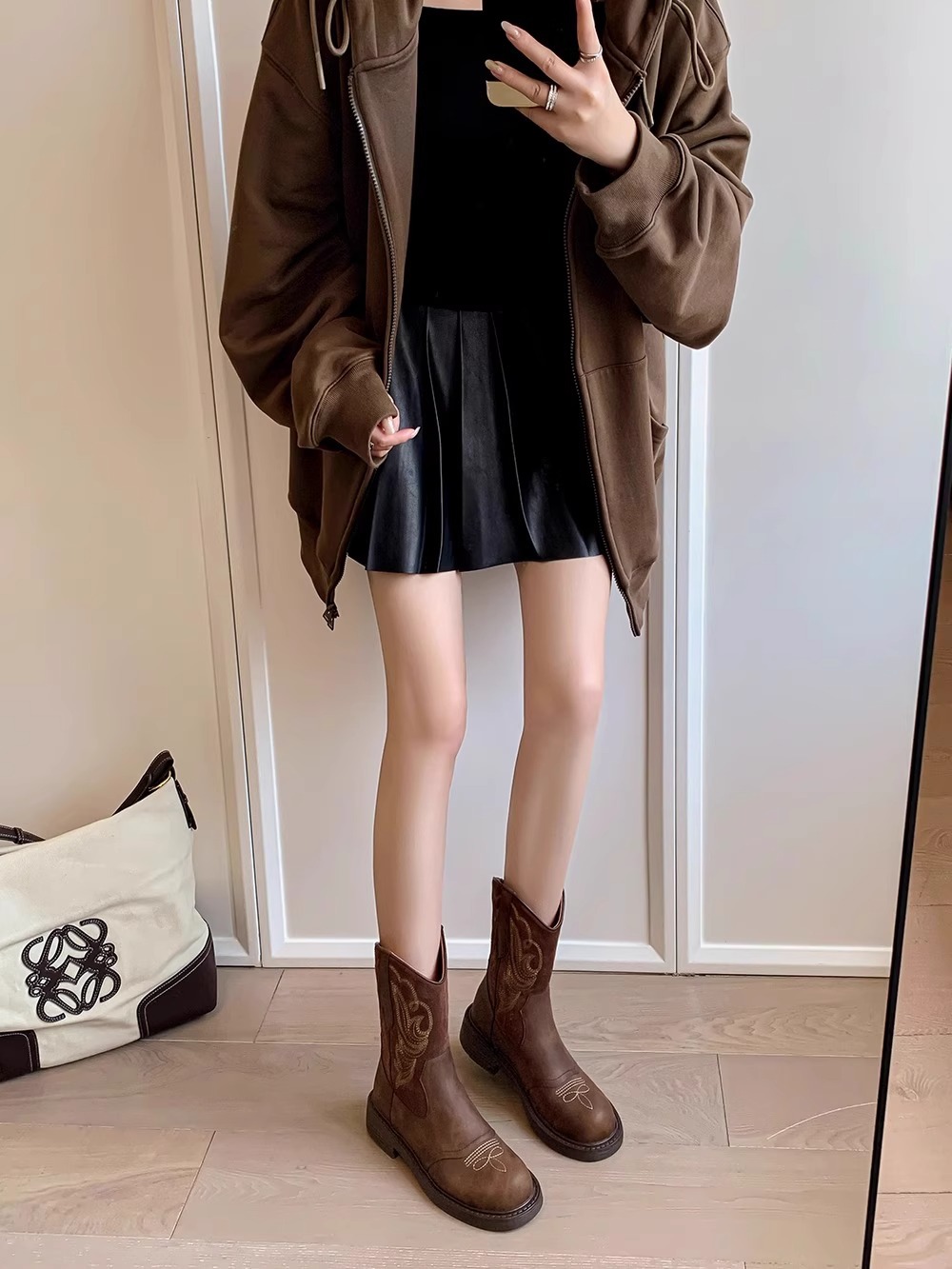 レディースチャンキープラットフォームマーティンブーツ2025年新作サマーショートブーツウエスタンカウボーイスタイル四川民族風乗馬ブーツ